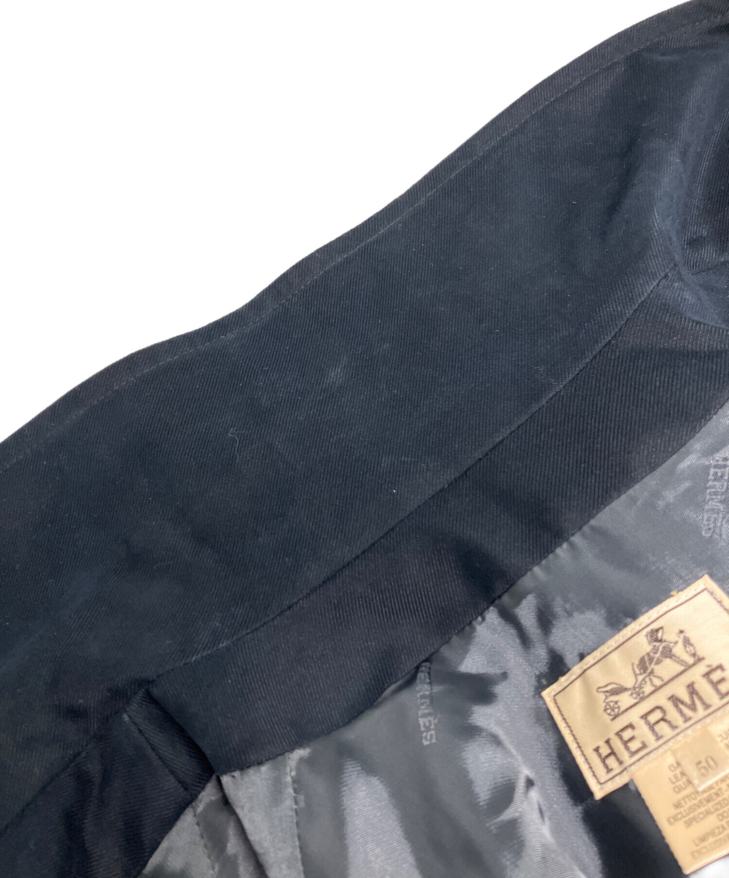 | スタッフコメント | HERMESのスタンドカラーコートでございます。シンプルなデザインの中にHERMESらしい細かなディティールが入り、高級感とラグジュアリーさを感じさせてくれます。フォーマルシーンでもデイリーシーンでも活躍する1着となっております。 |