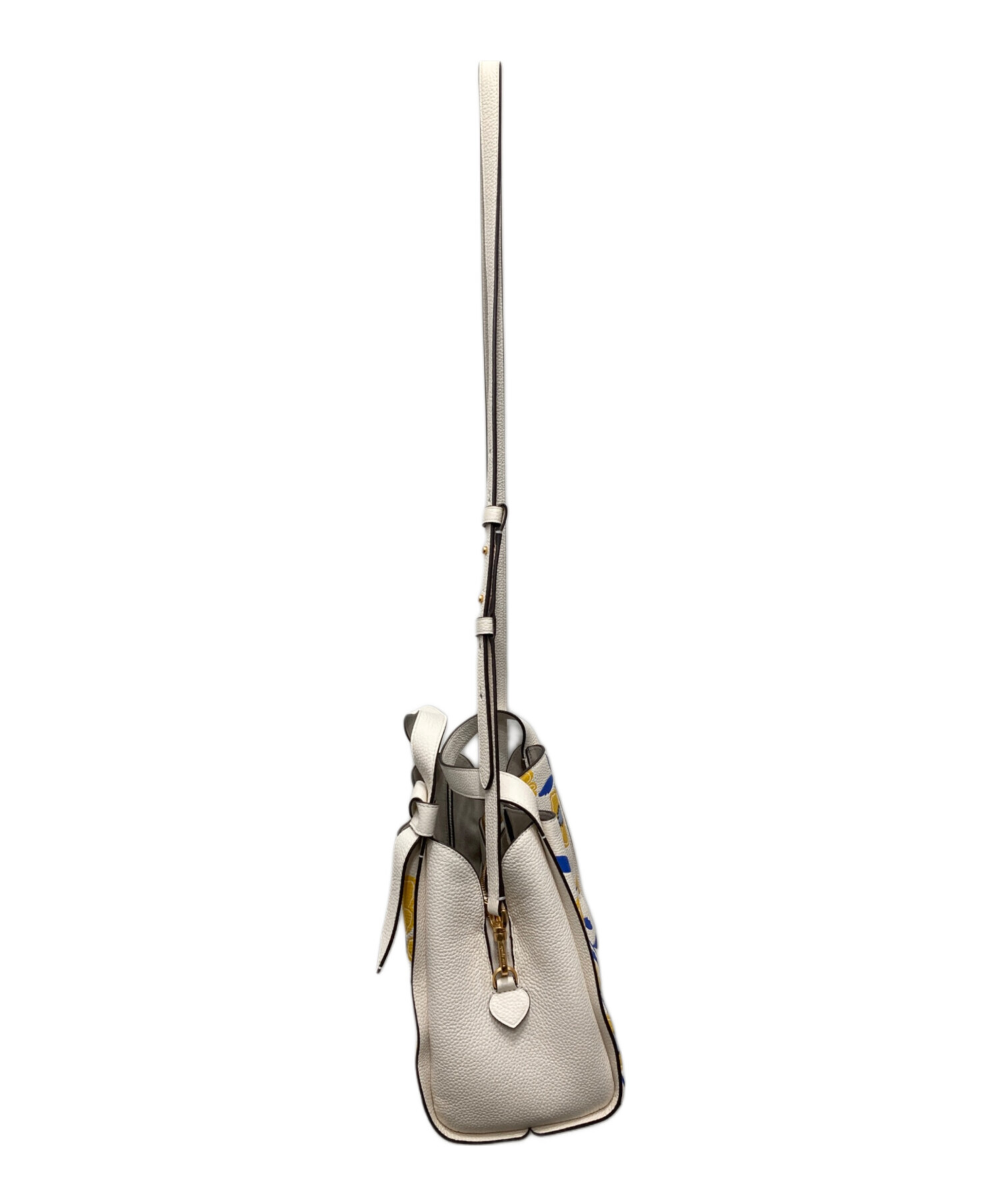| スタッフコメント | シグネチャーである「ノット(結び目)」のディテールがサイドハンドルにあしらわれた、三角形に近いシルエットが特徴です。全面に鮮やかな「サンシャインフローラル」プリントが施されており、持つだけでコーディネートのアクセントになります。 |