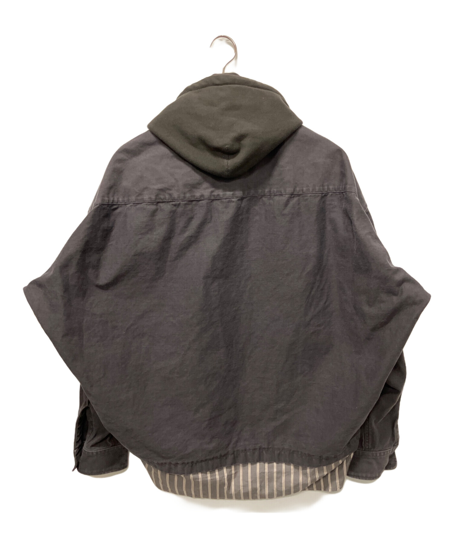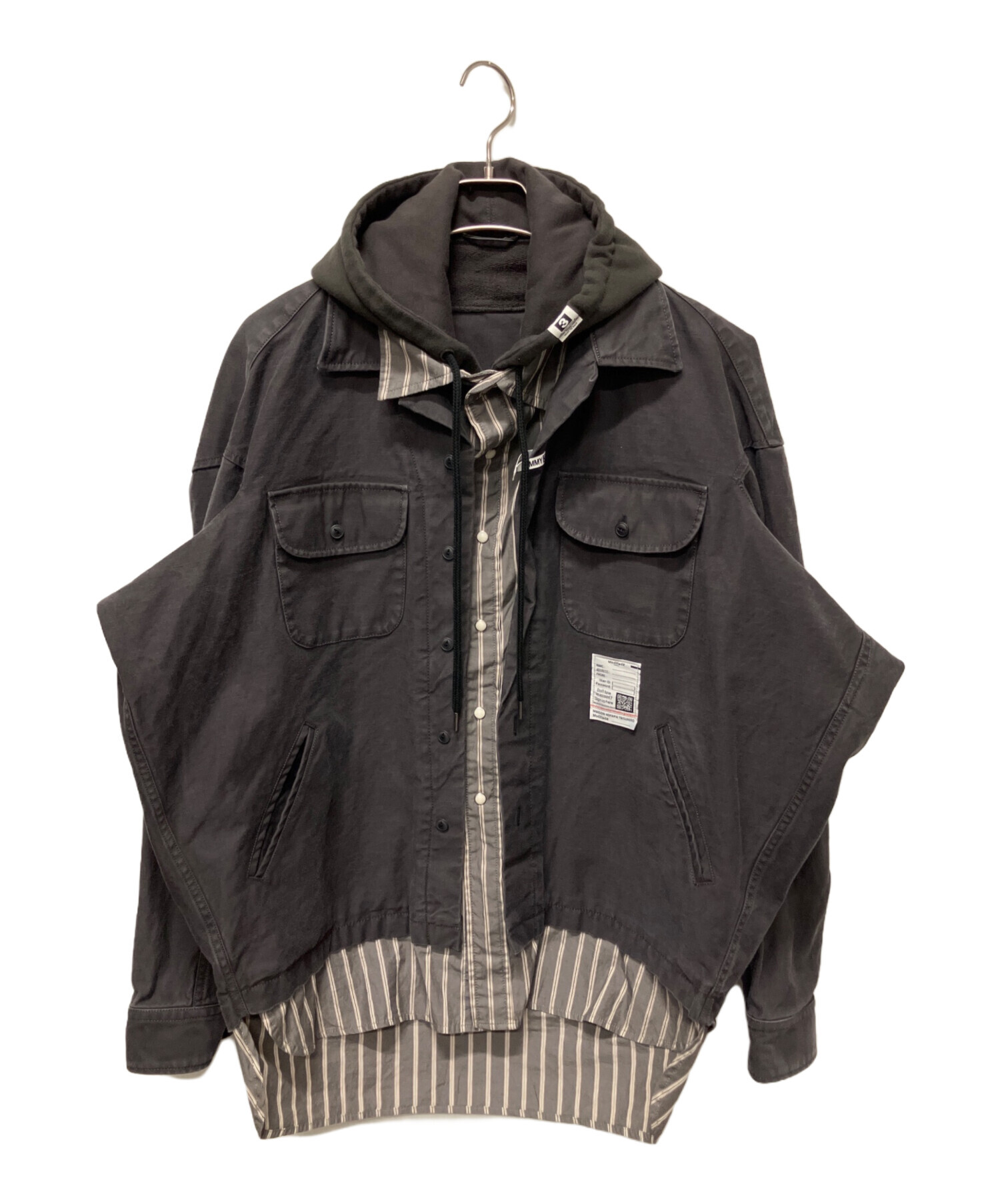 | スタッフコメント | シャツ、パーカー、ジャケットが3重にレイヤードされたストライプ柄のオーバーサイズシャツです。襟元やフロントのロゴパッチもワンポイントになっており、1枚でも存在感のあるデザイン性の高いアイテムです。 |