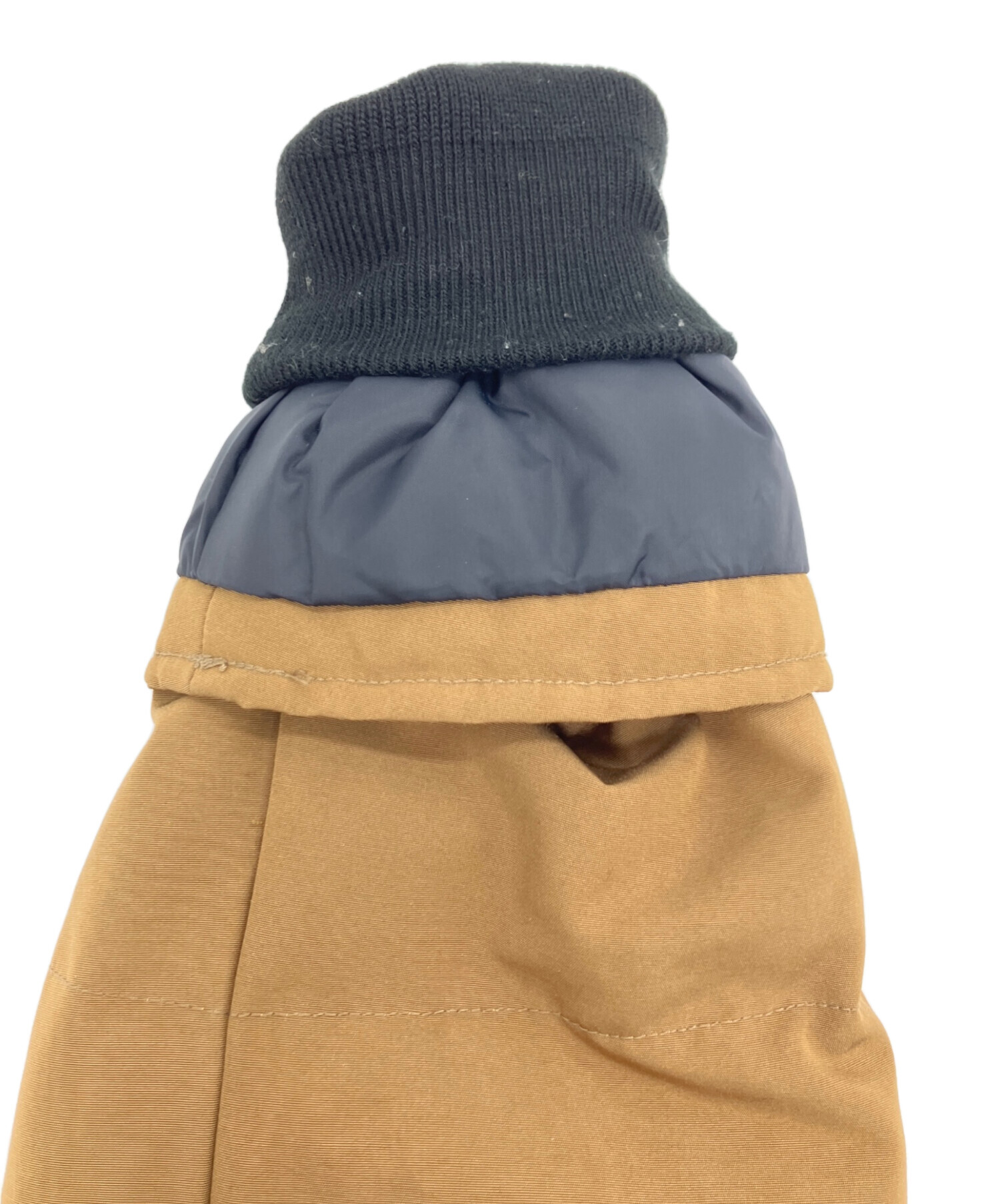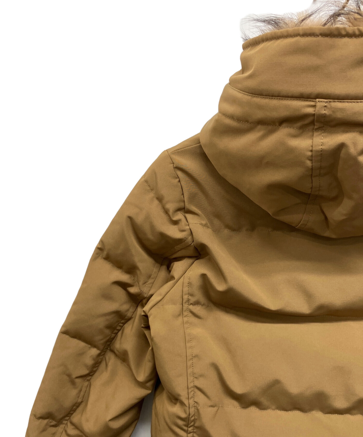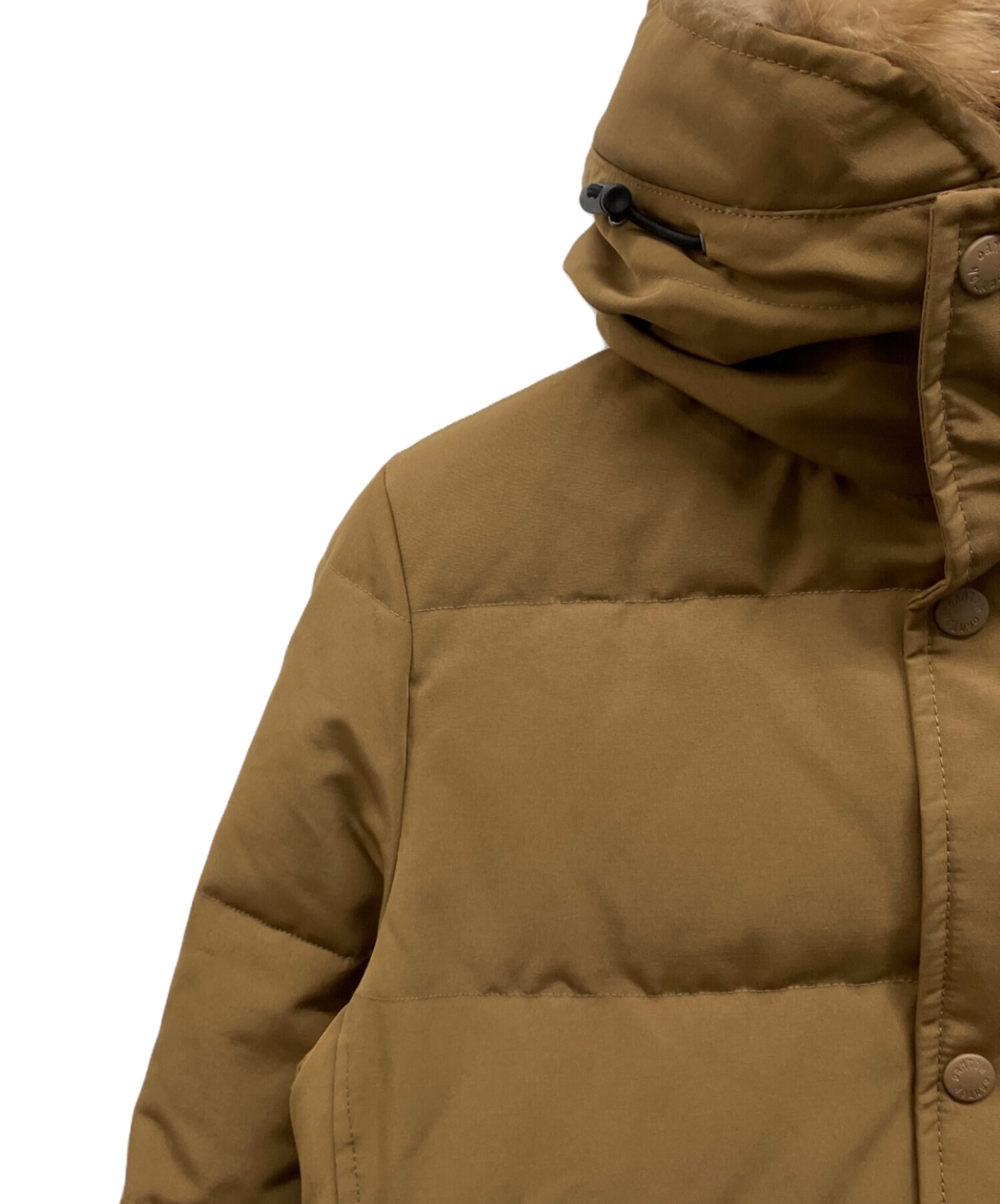 | 素材 | 表地 ポリエステル:82% 綿:18% 裏地 ポリエステル:100% 詰物 ダウン:80% フェザー:20% リブ部分 アクリル:88% ポリエステル:11% ポリウレタン:1% ファー部分 タヌキ(チャイニーズラクーン) |