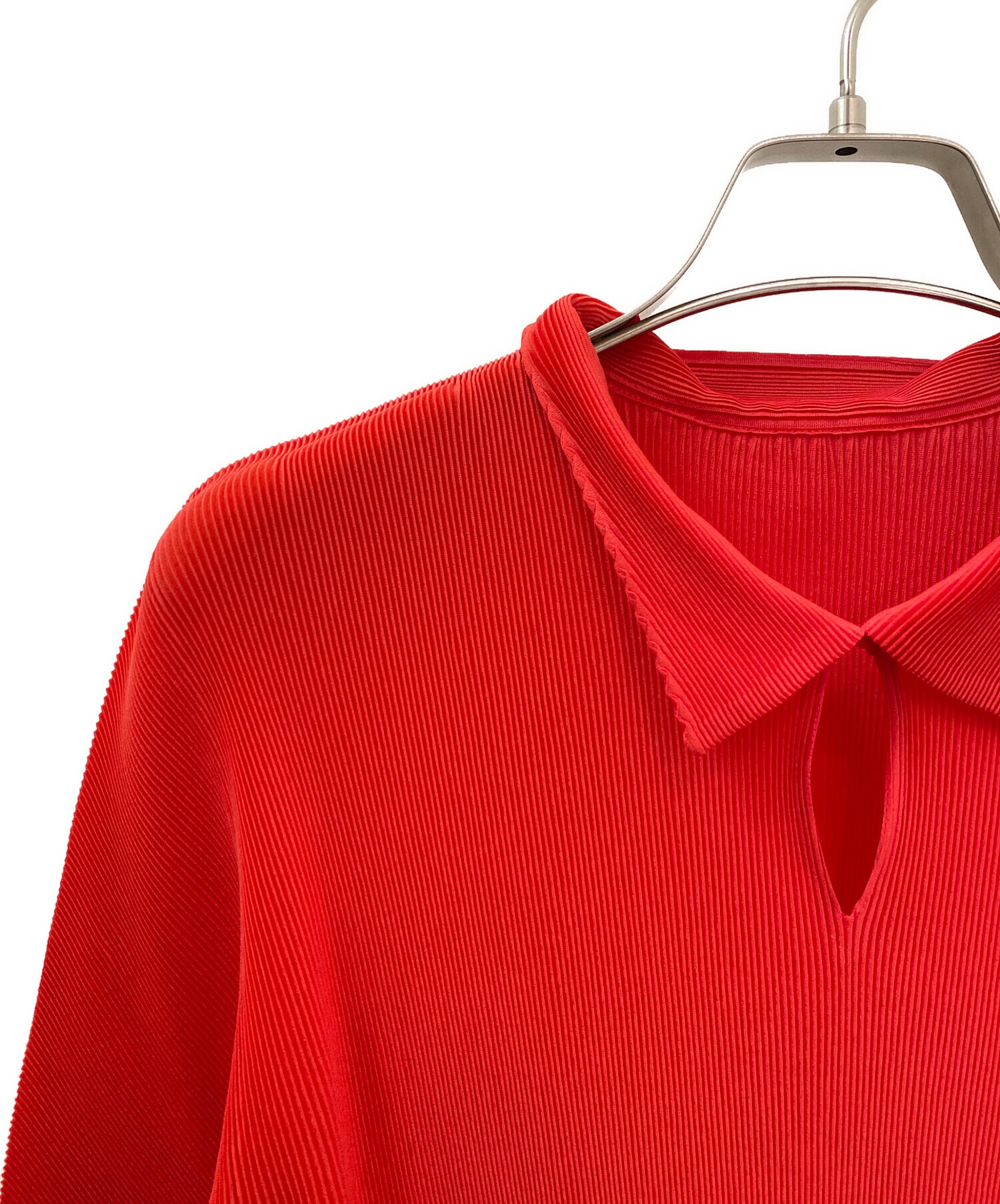 | スタッフコメント | 鮮やかなレッドカラーが目を惹くアイテムです。美しいプリーツ加工が施されており、伸縮性に優れた軽やかな着心地が魅力で、身体の動きに合わせて自然にフィットし、ストレスフリーにご着用いただけます。ポロシャツデザインが程よくカジュアルな印象を与えつつも、上品な素材感により大人のスタイリングにも取り入れやすい着です。 |