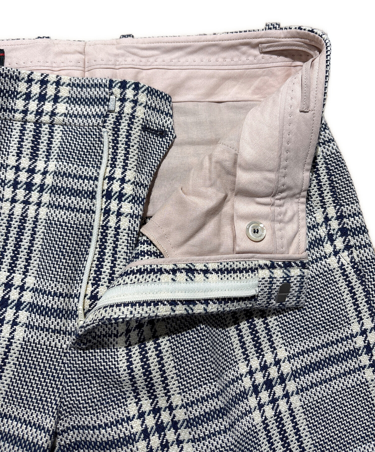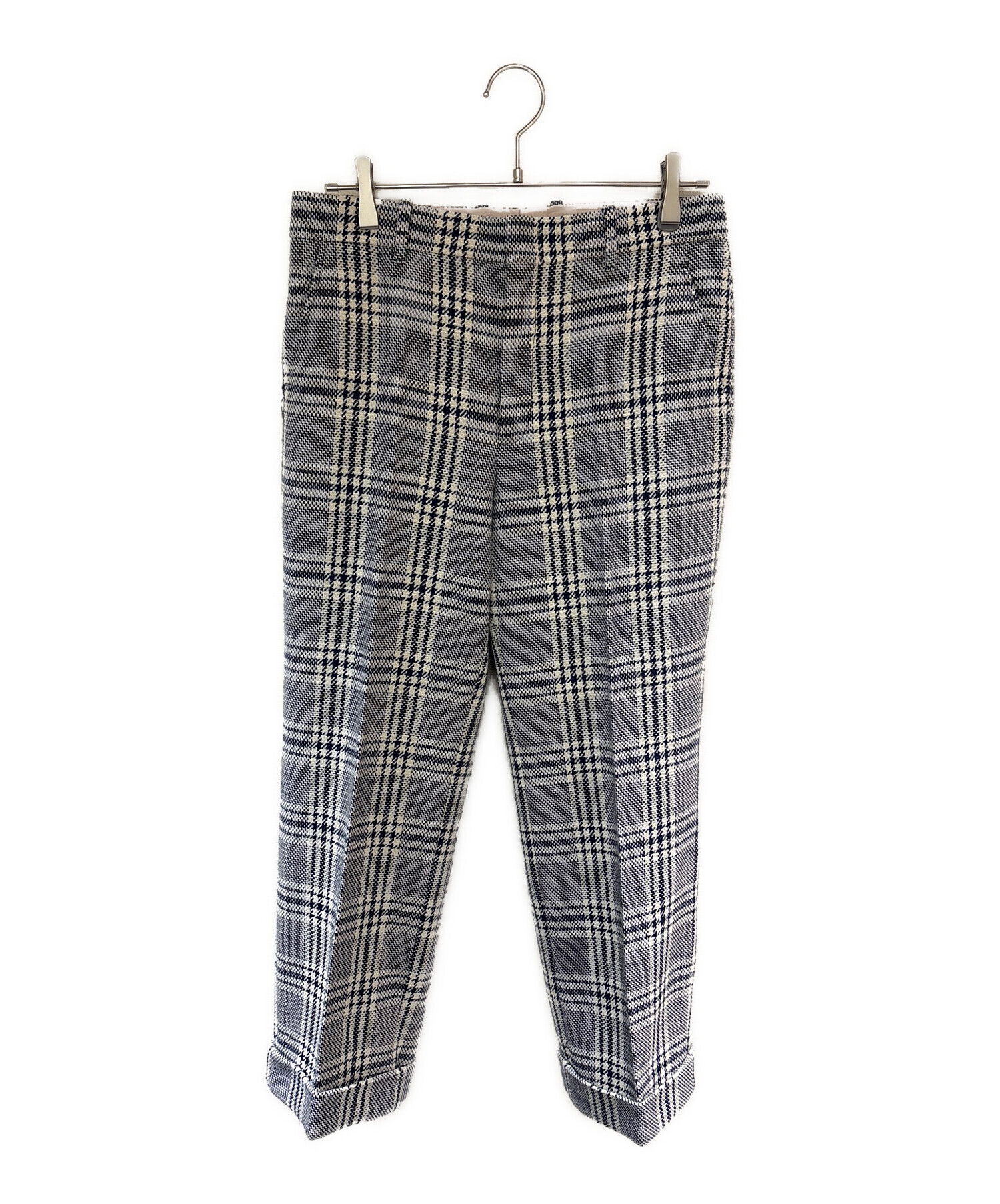 | スタッフコメント | GUCCI(グッチ)リネン混ウールチェックパンツ。通気性の良いリネン×上質ウール素材で軽やかな履き心地。落ち着いたチェック柄とすっきりしたシルエットで、ビジネスからカジュアルまで幅広く活躍します。 |