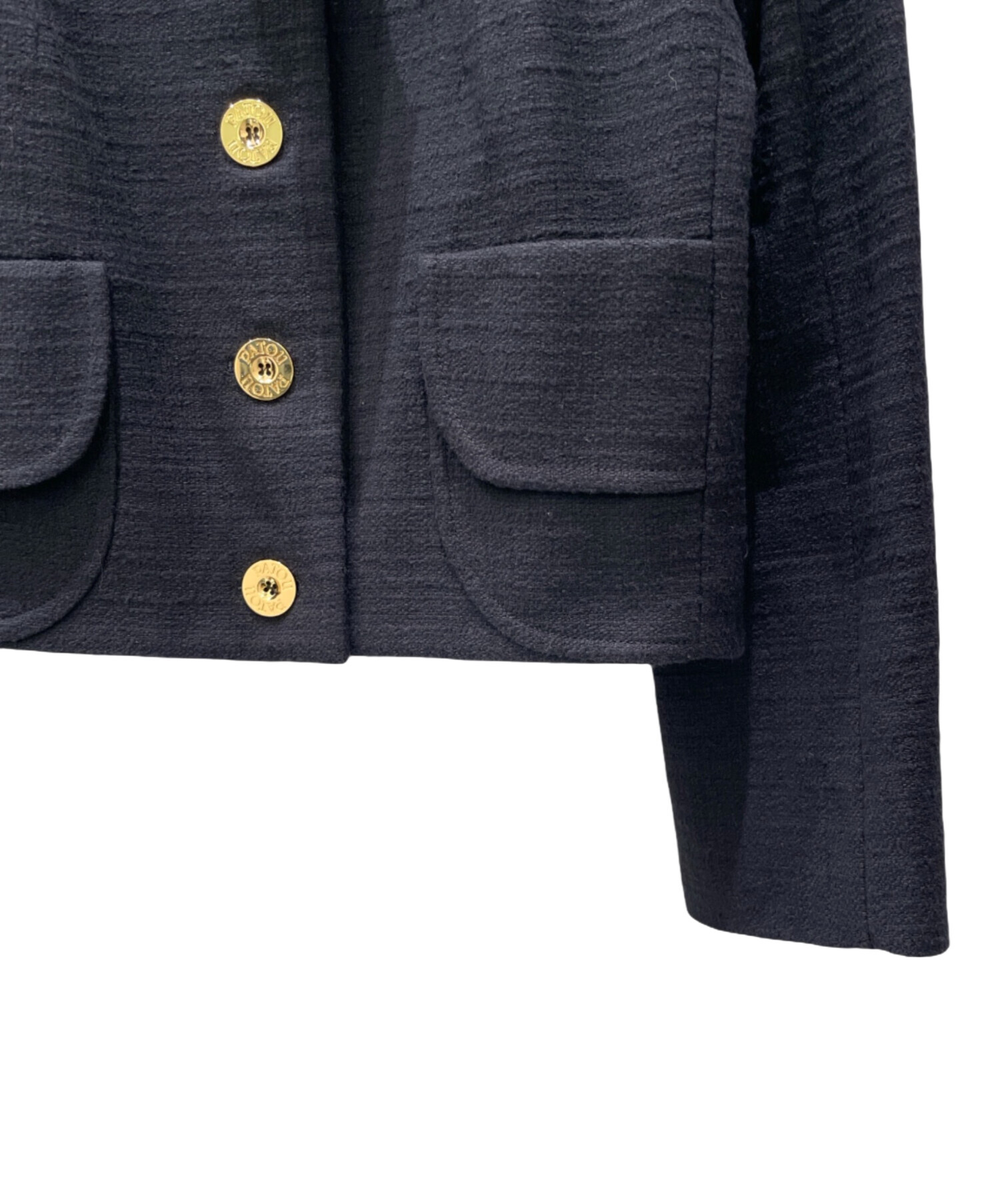 | スタッフコメント | Patouのコットンツイードショートジャケットでございます。上質な素材感とコンパクトなシルエットが特徴で、ゴールドボタンがアクセントとなり上品さを演出しております。程よく体に沿うデザインで、S〜Mサイズの方にフィットしやすく、着心地も快適でございます。通勤やお出かけなど幅広いシーンで活躍し、洗練された印象をプラスしてくれる一着でございます。 |