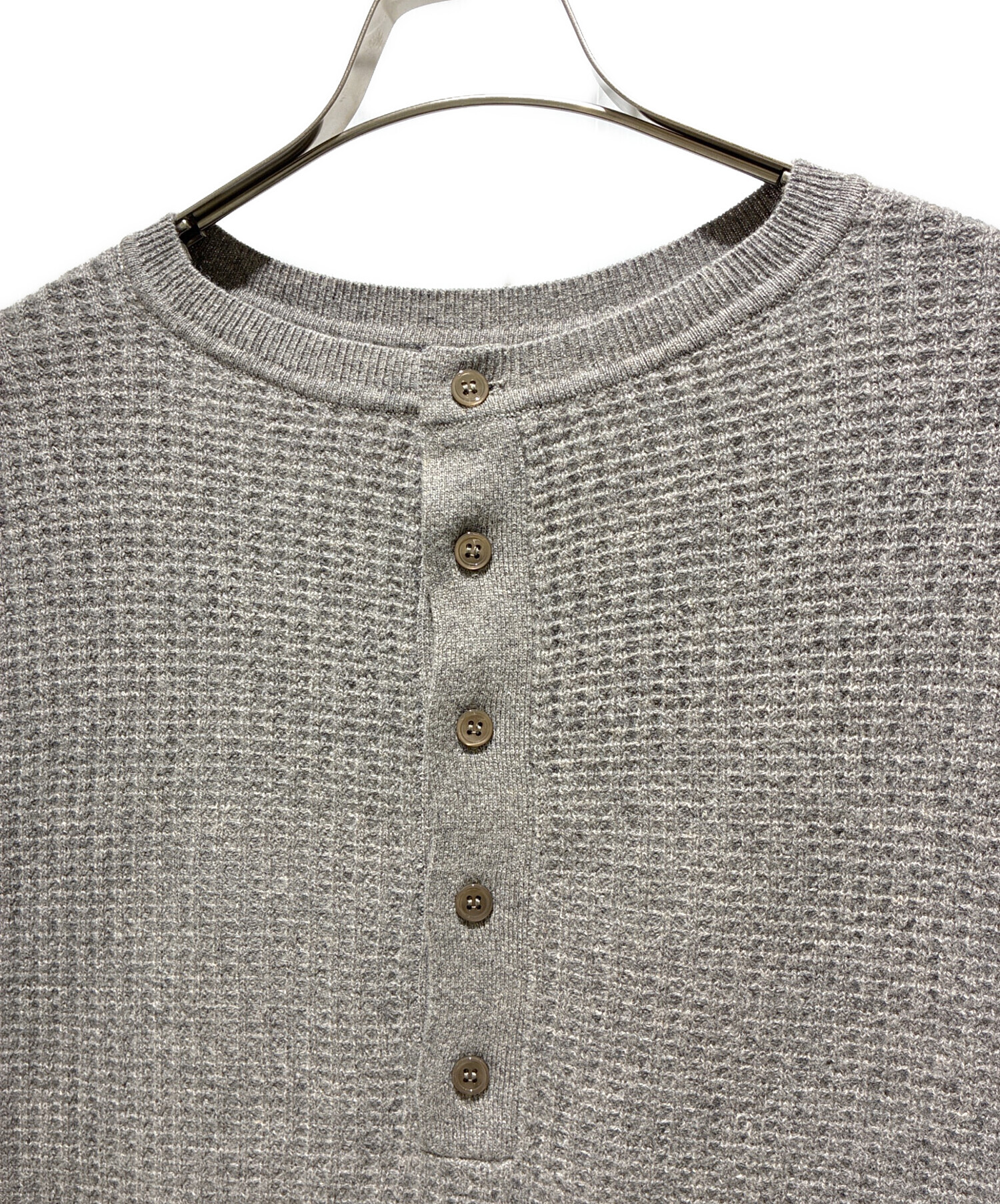 | スタッフコメント | バックボタンデザインがアクセントになったサーマルニットでございます。グレーカラーのシンプルなデザインでコーディネートに取り入れやすく、サーマル特有の立体感のある編み地がカジュアルながら上品な印象を演出いたします。ゆったりとしたシルエットでデイリー使いに活躍するおすすめのニットでございます。 |