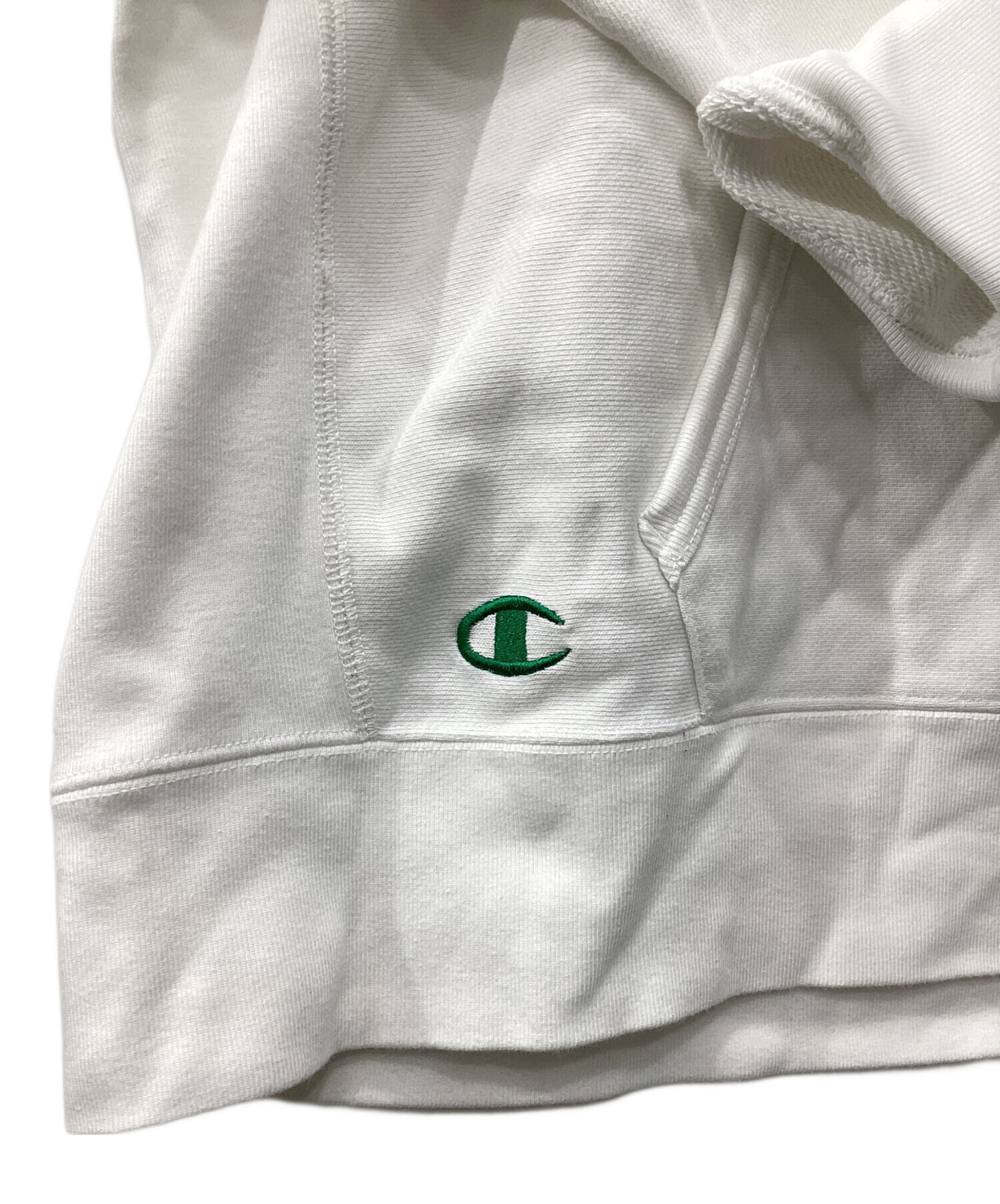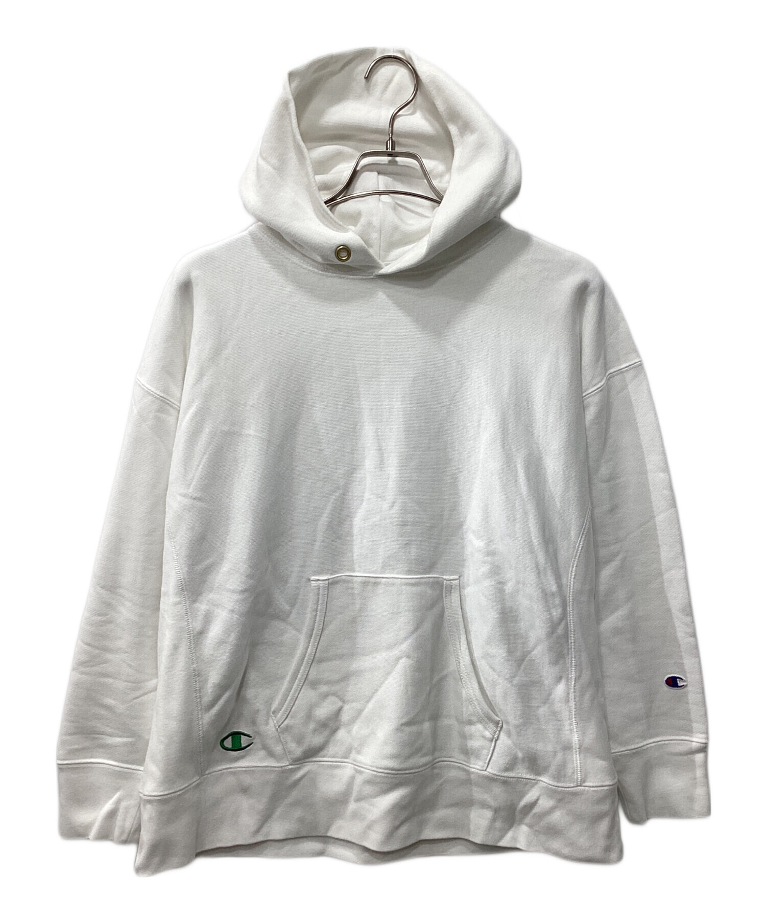 • Champion REVERSE WEAVE(チャンピオン リバース ウィーブ)Champion REVERSE WEAVE (チャンピオン リバース ウィーブ) プルオーバーパーカー ホワイト サイズ:Lの古着・服飾アイテム 毛羽立ち