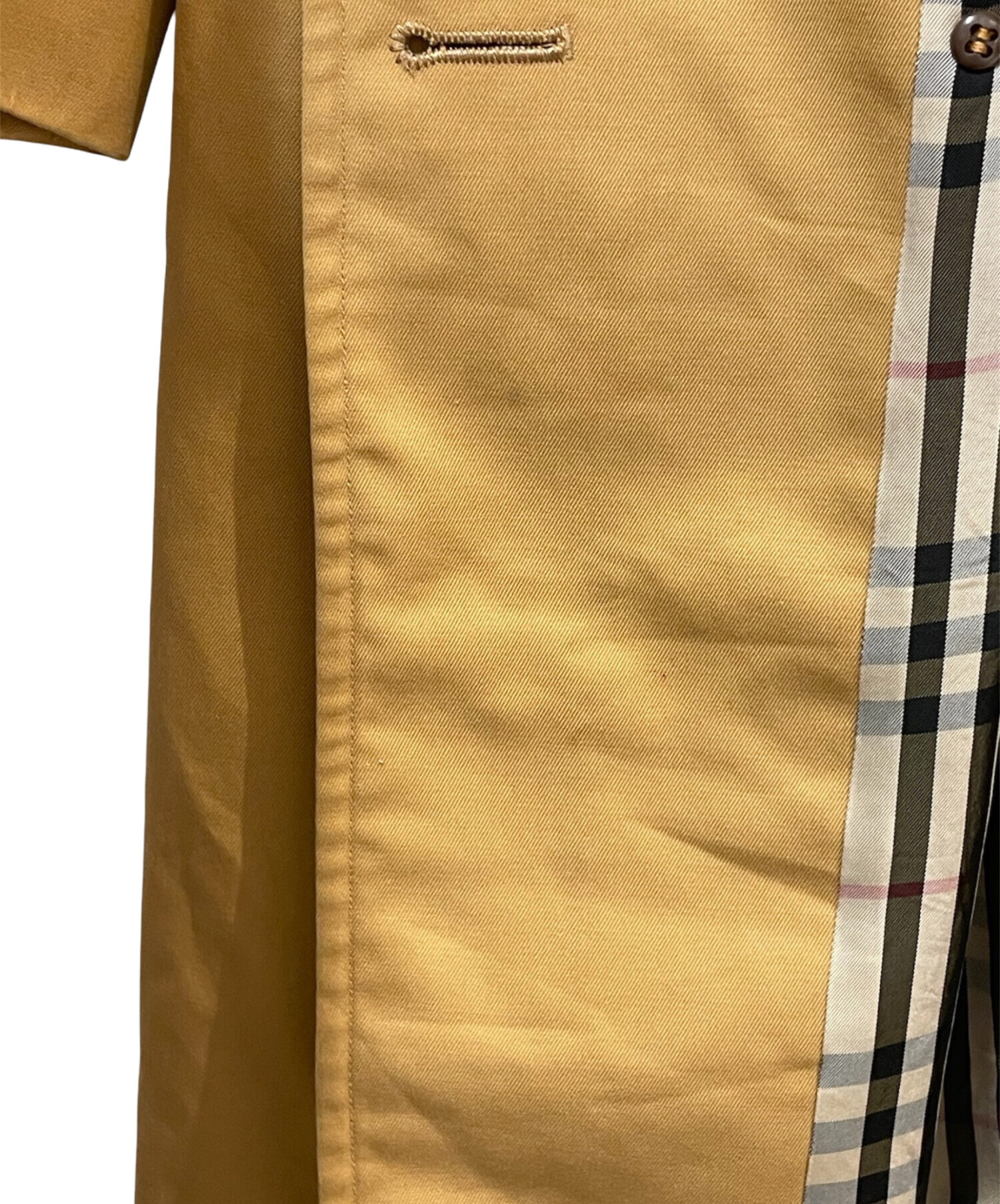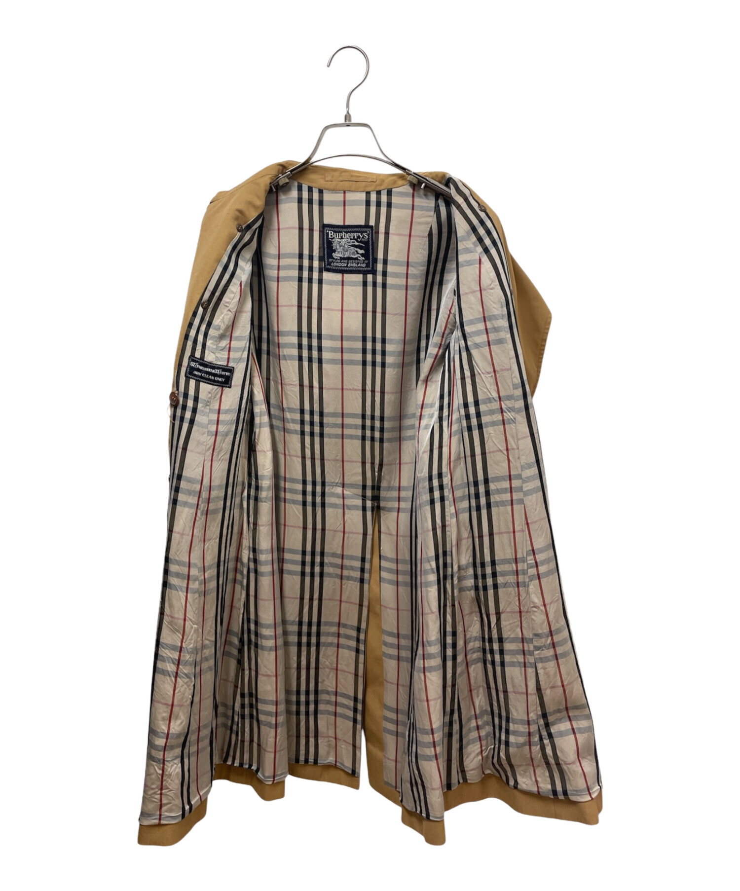| スタッフコメント | Burberry'sのトレンチコートでございます。ブランドの象徴ともいえるギャバジン素材を使用し伝統的なディテールがクラシックな存在感を演出いたします。裏地にはアイコニックなチェック柄があしらわれており、さりげなくブランドらしさを感じていただけます。 |