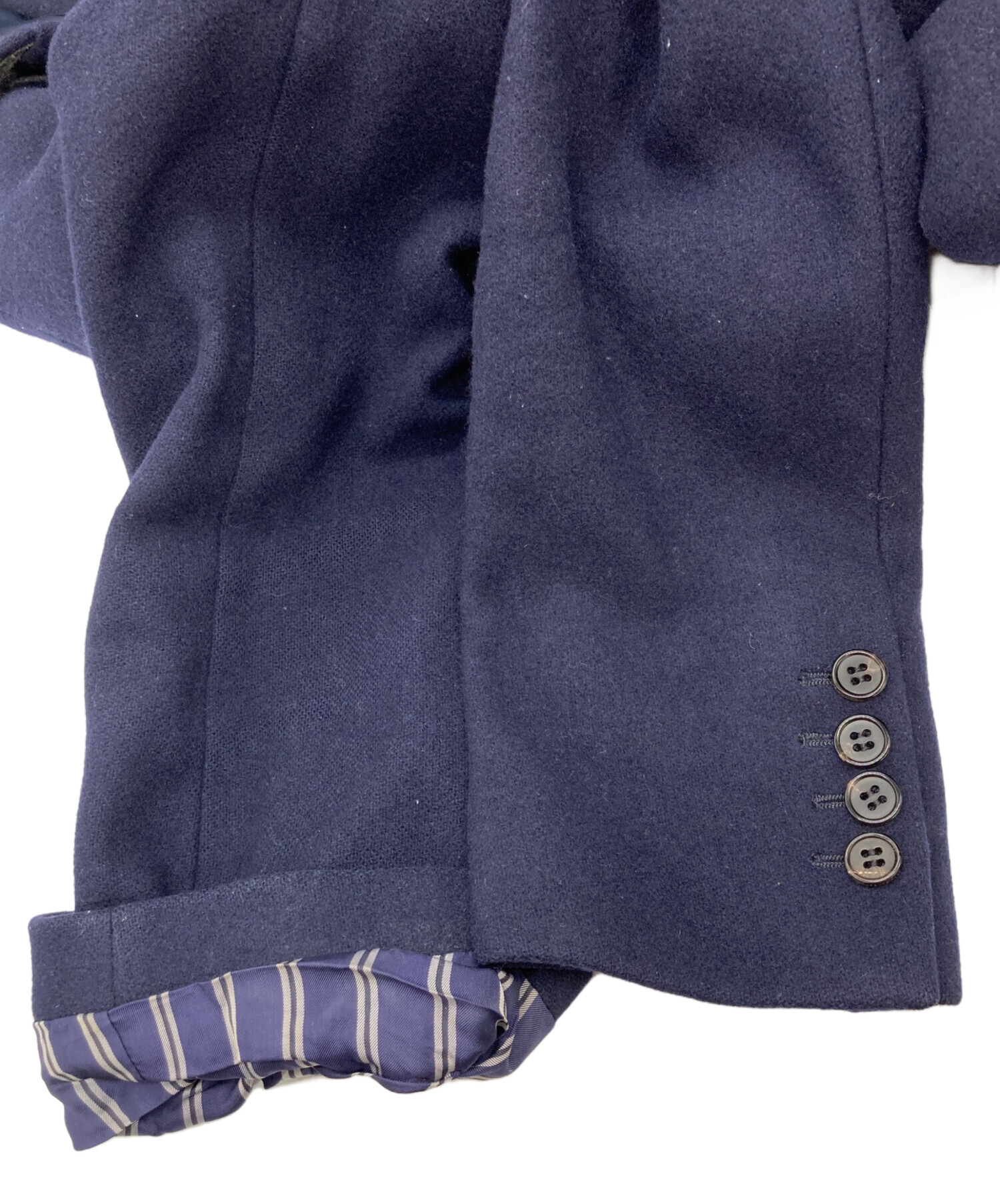 目立つシミや汚れ、におい等がある場合は商品画像や説明文にて極力表記させていただいておりますが、中古品という商品の特性上、全ての瑕疵や不備、洋服直し箇所を撮影・記載をすることは難しくなっております。また、ほとんどのアイテムは店頭と併売しておりますため、出品掲載時からコンディションが変動している場合もございます。あらかじめご了承くださいませ。