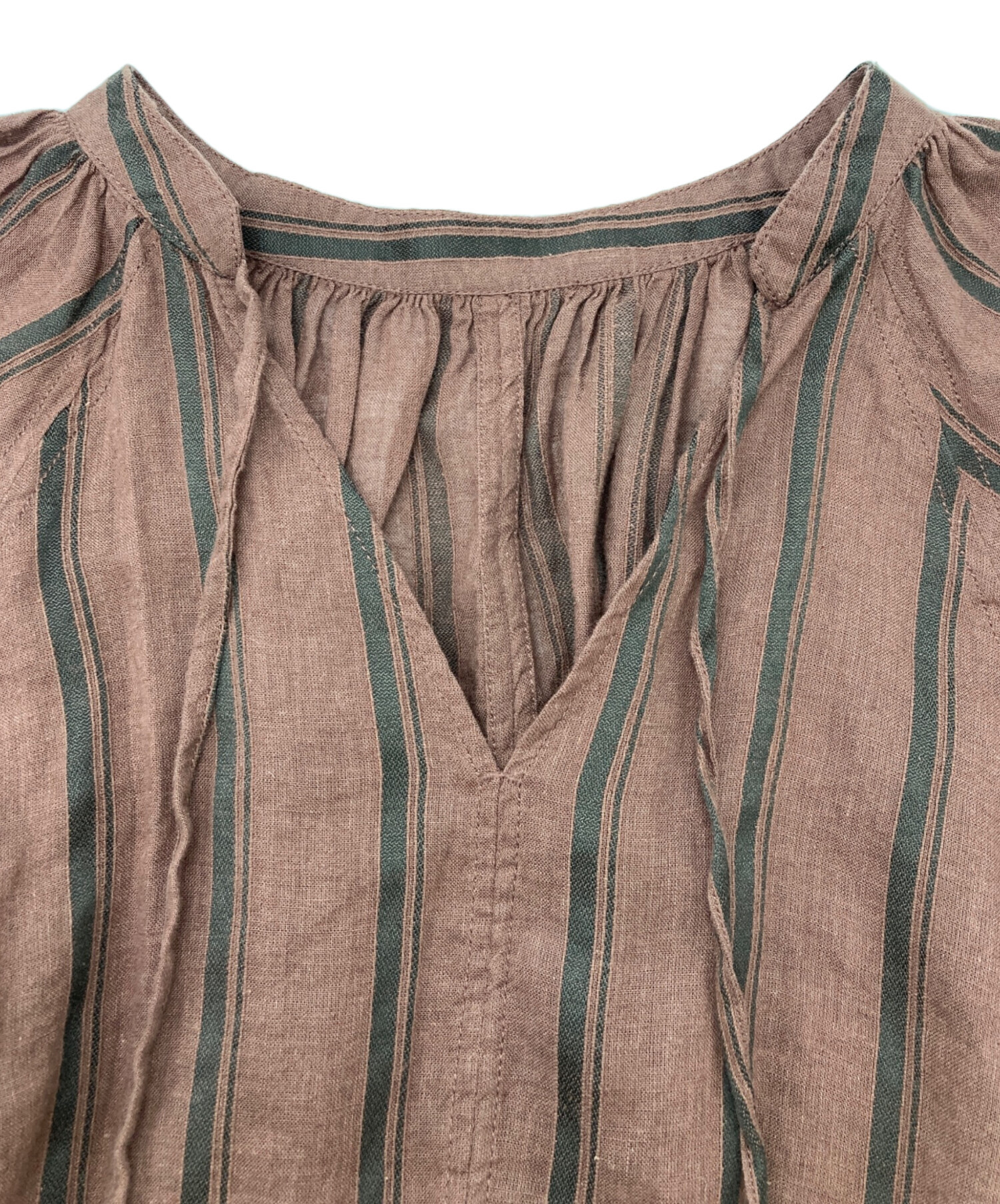 | アイテム名 | ボリュームスリーブストライプリネン混ワンピース |