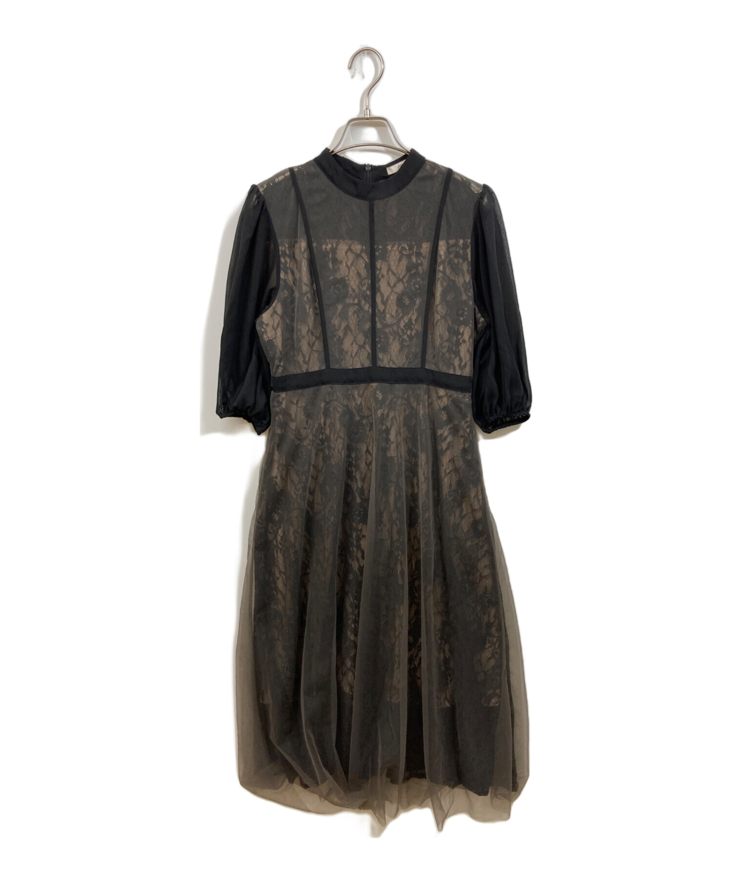 アイテム名 ハイウエストチュールレースAラインワンピースドレス」