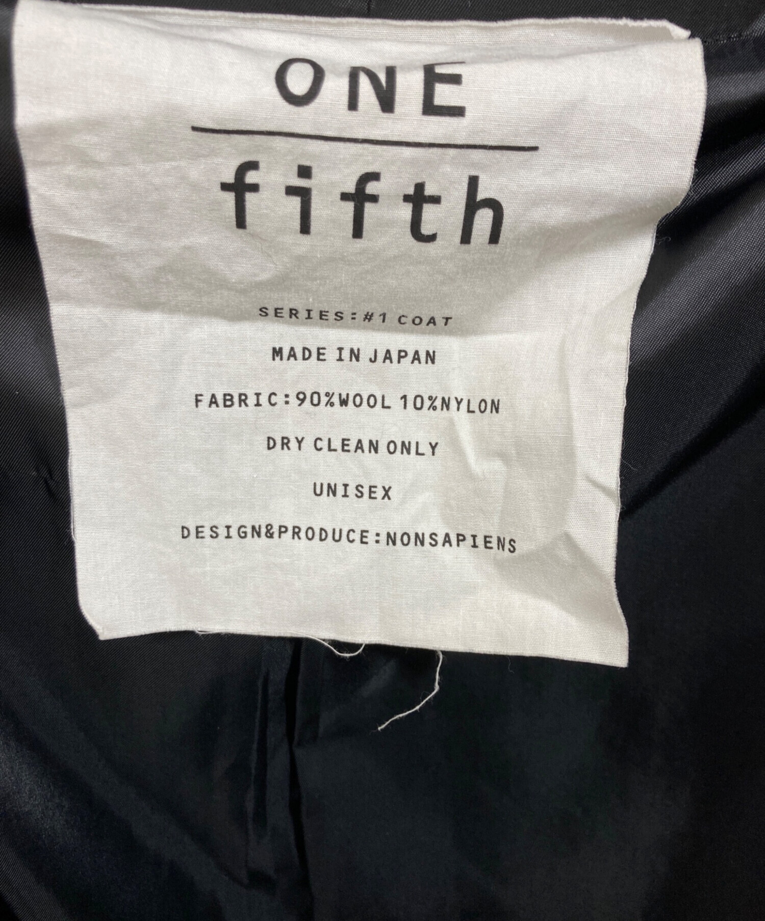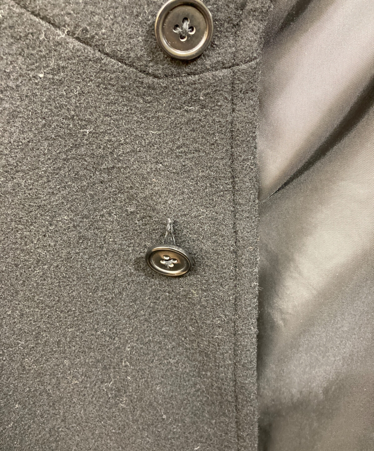 • ONE FIFTH(ワンフィフス)one fifth (ワンフィフス) スタンドカラーコート ブラック サイズ:SIZE 3の古着・服飾アイテム フロントボタン取れかけ