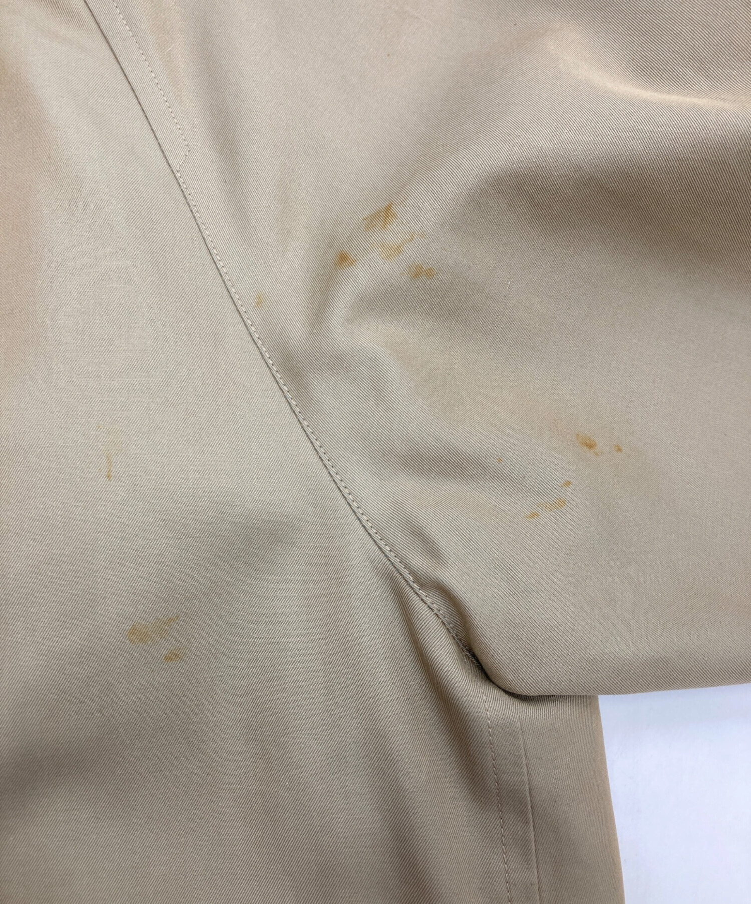 目立つシミや汚れ、におい等がある場合は商品画像や説明文にて極力表記させていただいておりますが、中古品という商品の特性上、全ての瑕疵や不備、洋服直し箇所を撮影・記載をすることは難しくなっております。また、ほとんどのアイテムは店頭と併売しておりますため、出品掲載時からコンディションが変動している場合もございます。あらかじめご了承くださいませ。