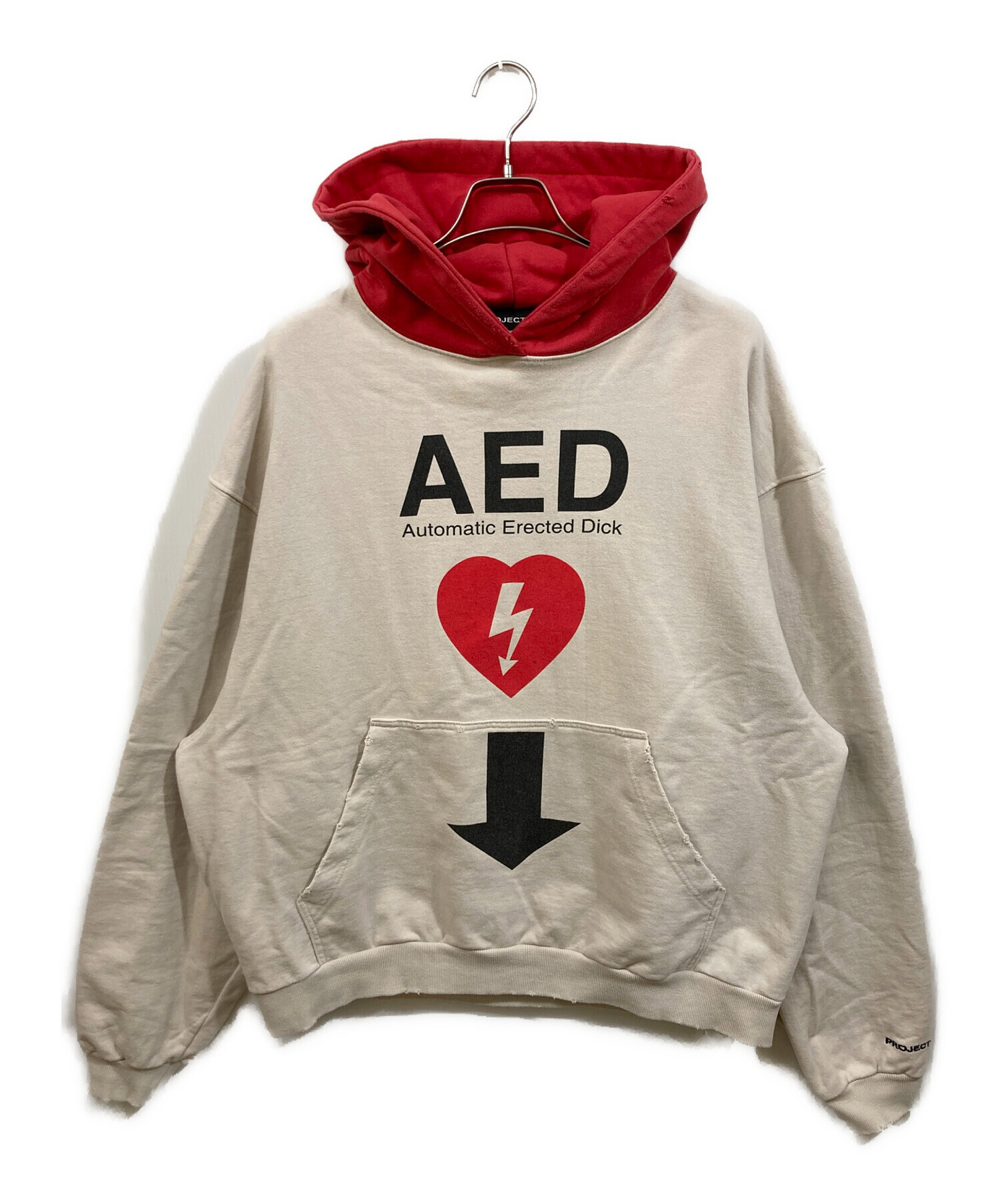 • PROJECT G/R(プロジェクト ジーアール)PROJECT G/R (プロジェクト ジーアール) AED OVERFIT HOODIE ベージュ サイズ:	SIZE 1の古着・服飾アイテム ポケットダメージ加工