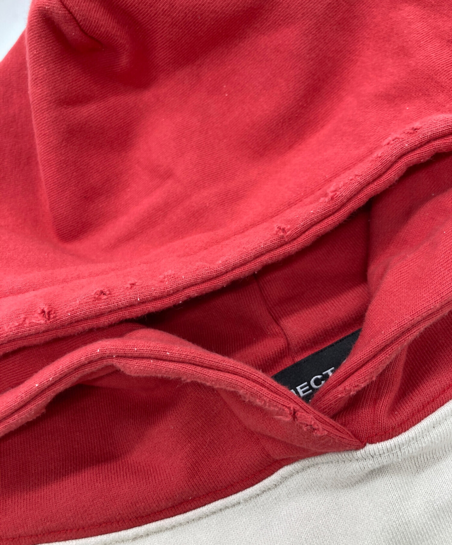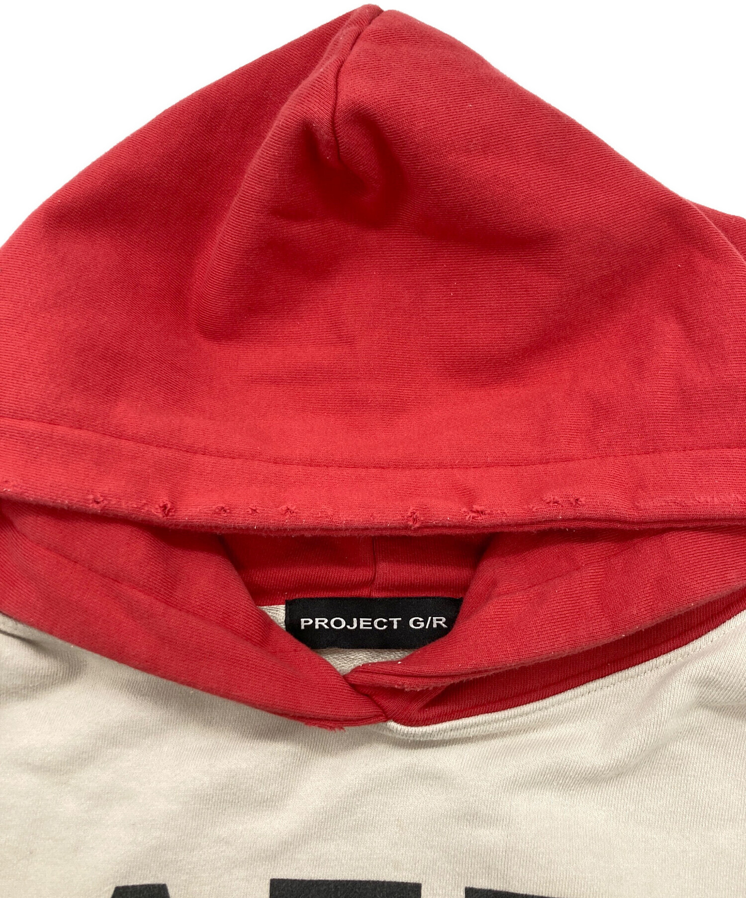 • PROJECT G/R(プロジェクト ジーアール)PROJECT G/R (プロジェクト ジーアール) AED OVERFIT HOODIE ベージュ サイズ:	SIZE 1の古着・服飾アイテム 背面首周りダメージ加工