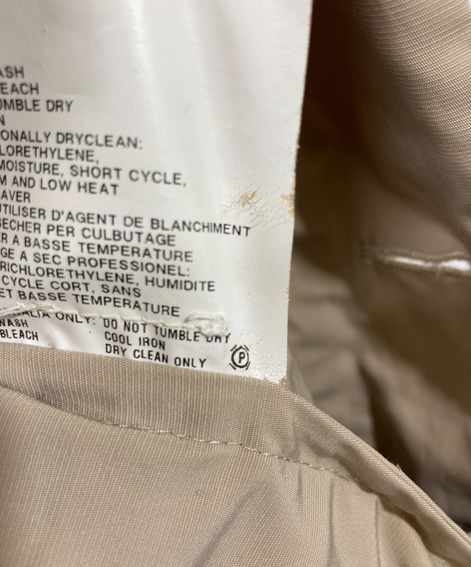 目立つシミや汚れ、におい等がある場合は商品画像や説明文にて極力表記させていただいておりますが、中古品という商品の特性上、全ての瑕疵や不備、洋服直し箇所を撮影・記載をすることは難しくなっております。また、ほとんどのアイテムは店頭と併売しておりますため、出品掲載時からコンディションが変動している場合もございます。あらかじめご了承くださいませ。