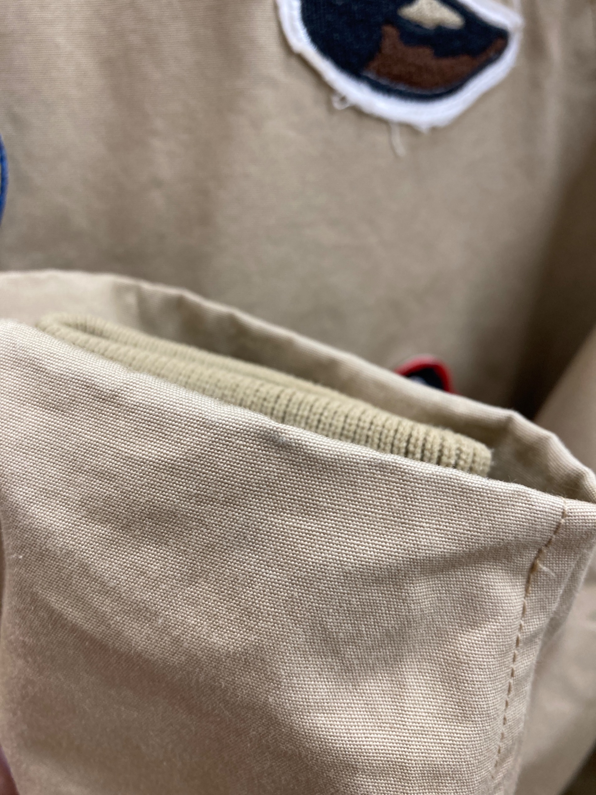 | 素材 | 表地:綿100% 裏地:ポリエステル100% リブ部分:ナイロン100% ワッペン部分 土台部分:綿100% 刺繍部分:ポリエステル100% |