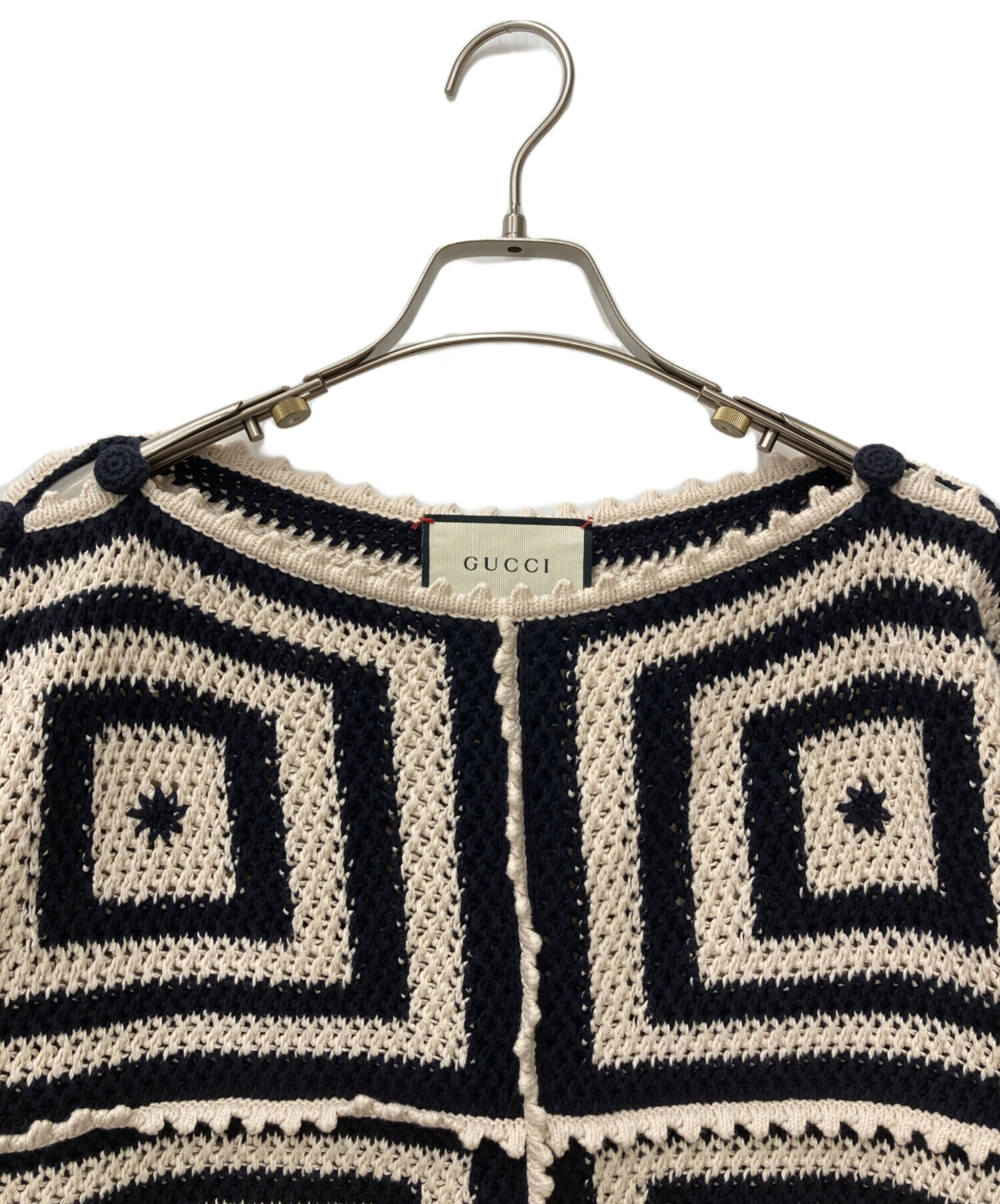 • GUCCI(グッチ)GUCCI (グッチ) ニット ベージュ×ネイビー サイズ:XSの古着・服飾アイテム ケアタグ文字薄れ