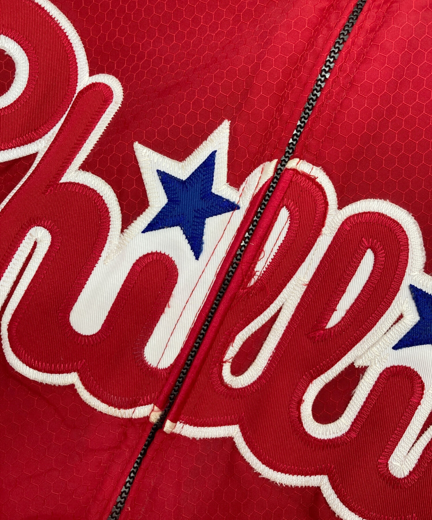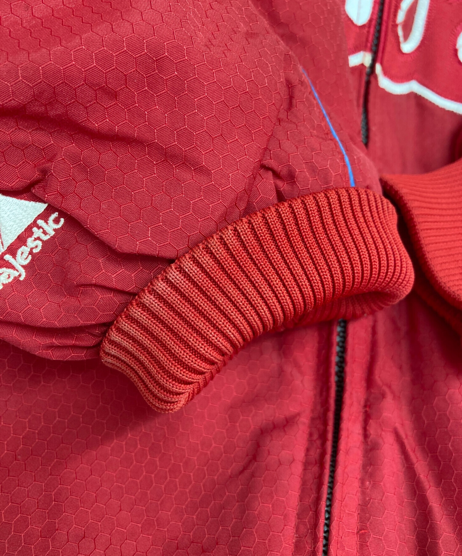 • MAJESTIC ATHLETIC(マジェスティック アスレティック)MAJESTIC ATHLETIC (マジェスティック アスレティック) 中綿ジャケット レッド サイズ:不明の古着・服飾アイテム 袖口汚れ