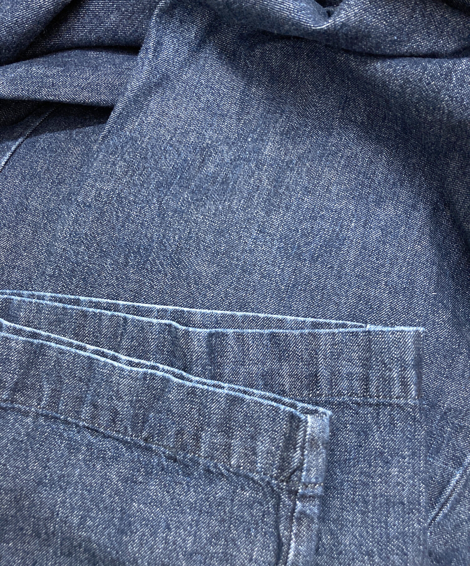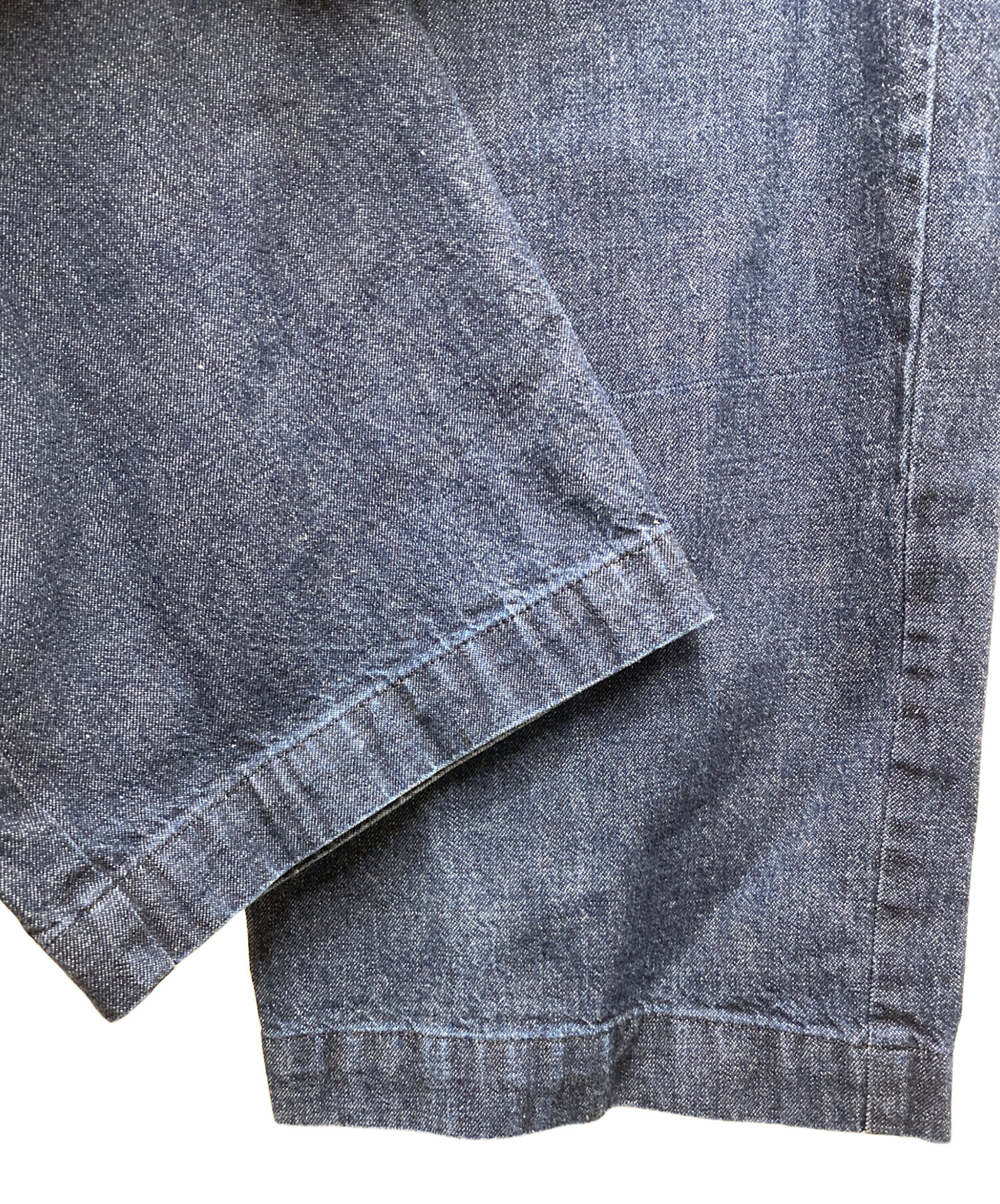 • KAGURE(カグレ)kagure (カグレ) コットンデニムイージーパンツ インディゴ サイズ:Freeの古着・服飾アイテム 左足フロント糸ツレ