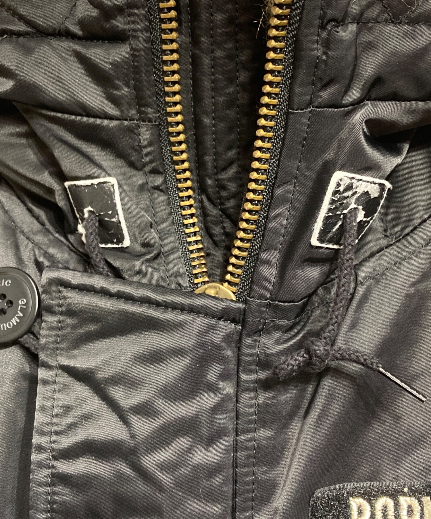 | 素材 | 表地 ナイロン 100% 中わた ポリエステル 100% リブ地 アクリル 80% ポリエステル 20% フェイクファー① アクリル系 100% グランド アクリル 100% フェイクファー② 当て布(合皮) ポリエステル 100% 裏地 ポリエステル 100% |