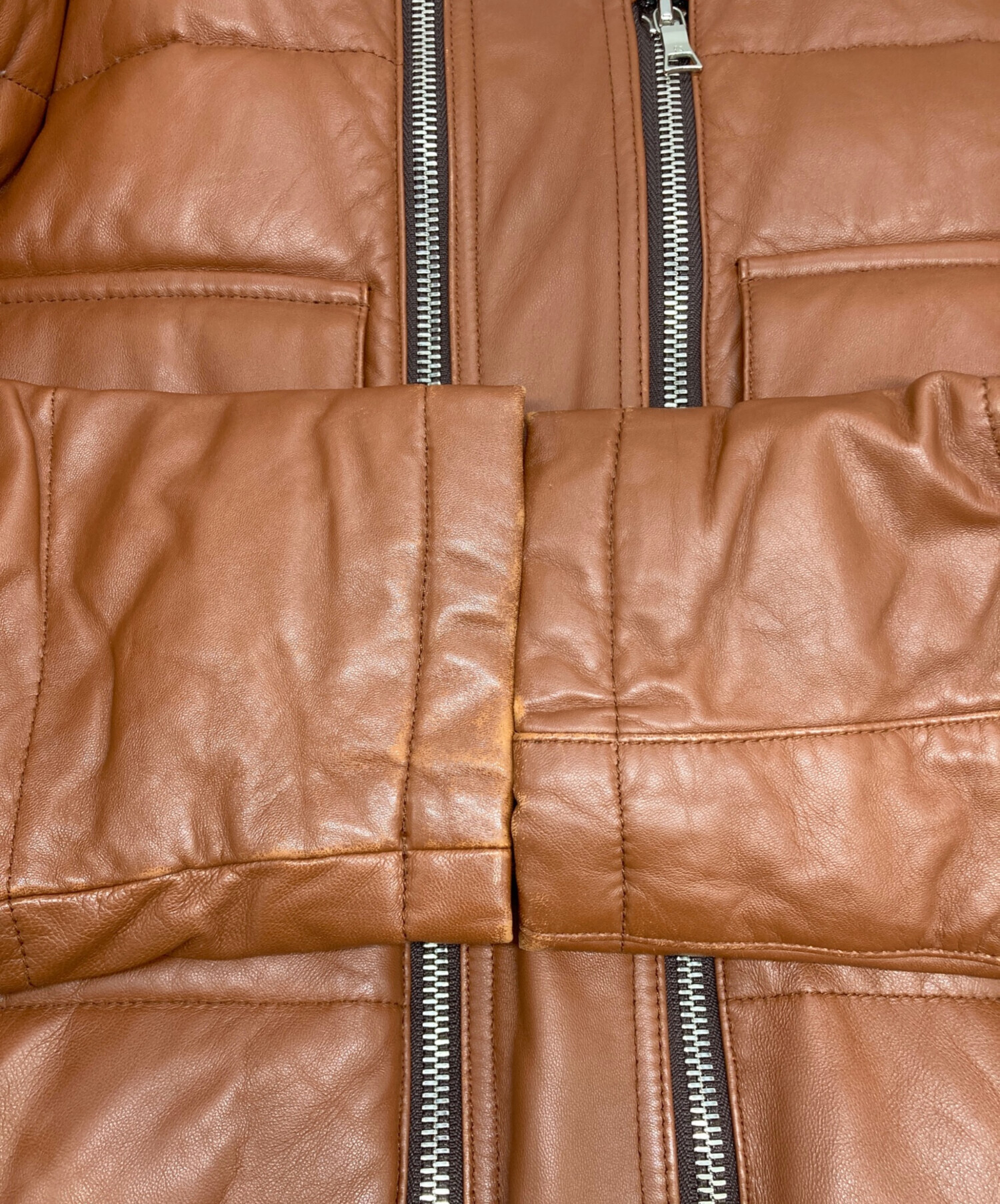 • PS Paul Smith(PSポールスミス)PS Paul Smith (PSポールスミス) ラムレザーダウンジャケット ブラウン サイズ:Lの古着・服飾アイテム 袖口にスレ有