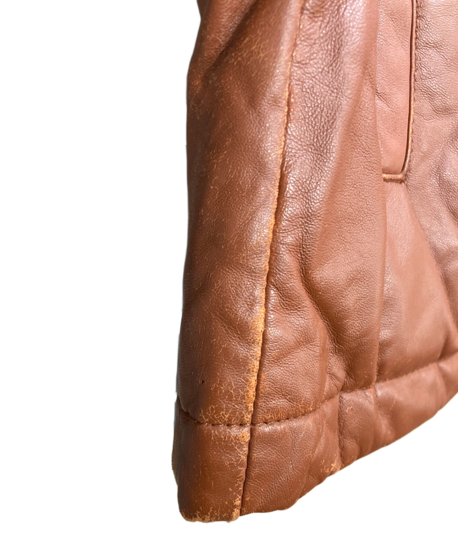 • PS Paul Smith(PSポールスミス)PS Paul Smith (PSポールスミス) ラムレザーダウンジャケット ブラウン サイズ:Lの古着・服飾アイテム サイドにスレ有