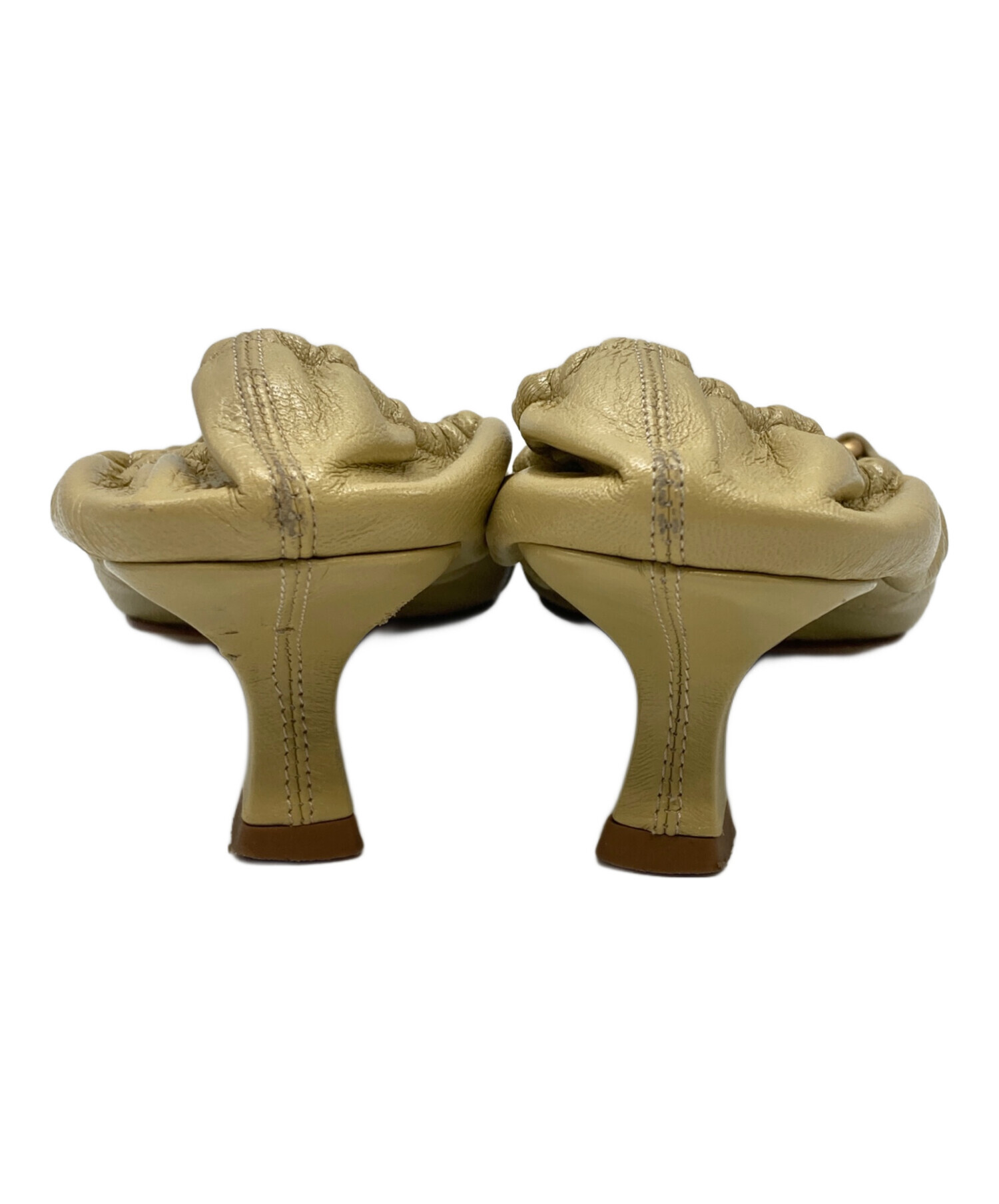• BOTTEGA VENETA(ボッテガベネタ)BOTTEGA VENETA (ボッテガベネタ) マダム パテントレザー ギャザー パンプス ベージュ サイズ:37の古着・服飾アイテム トゥキズ有