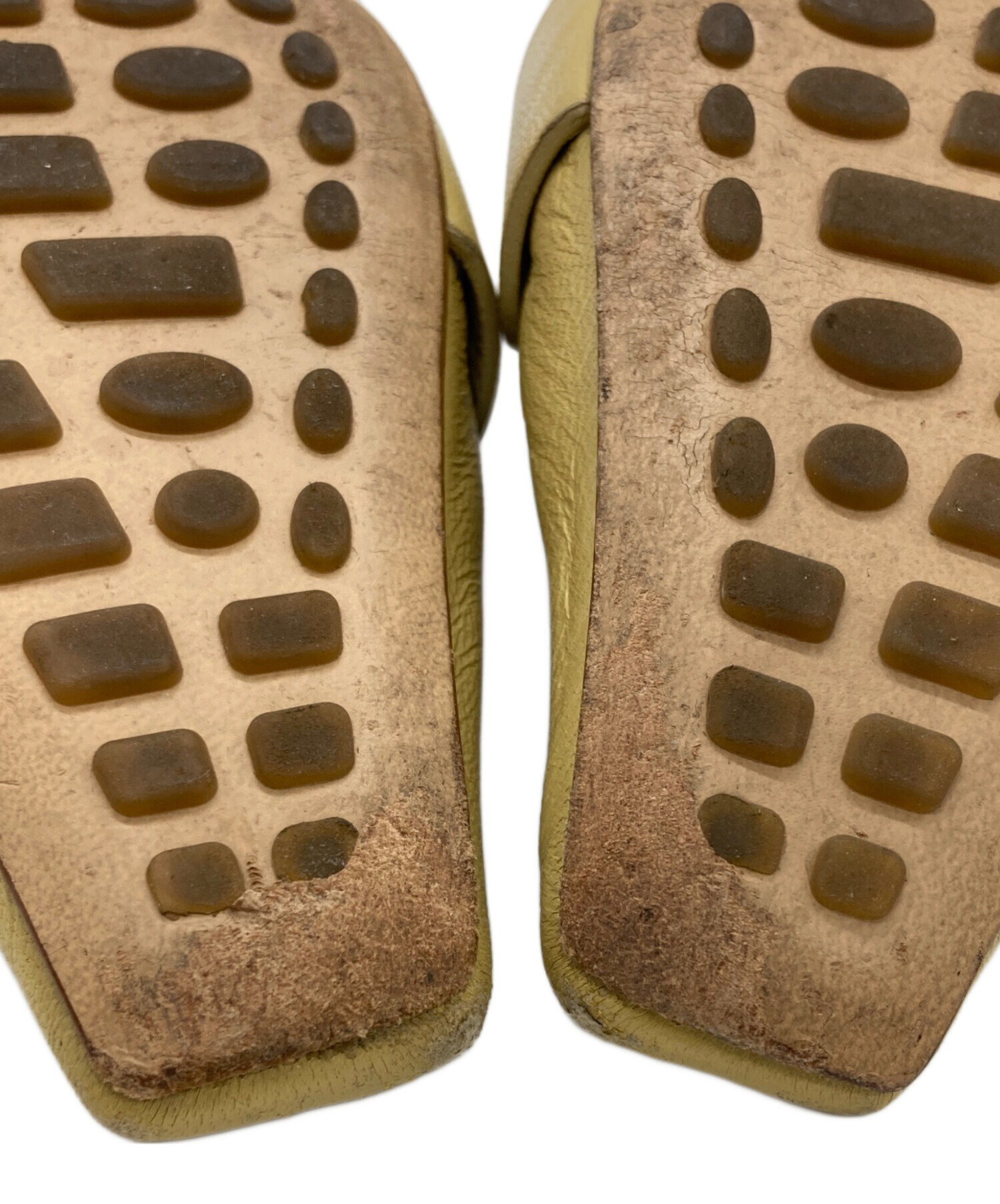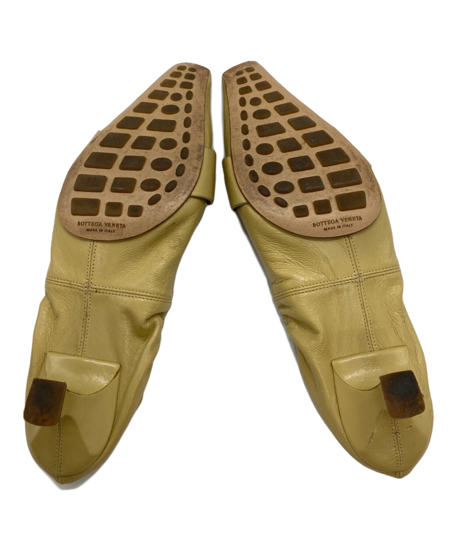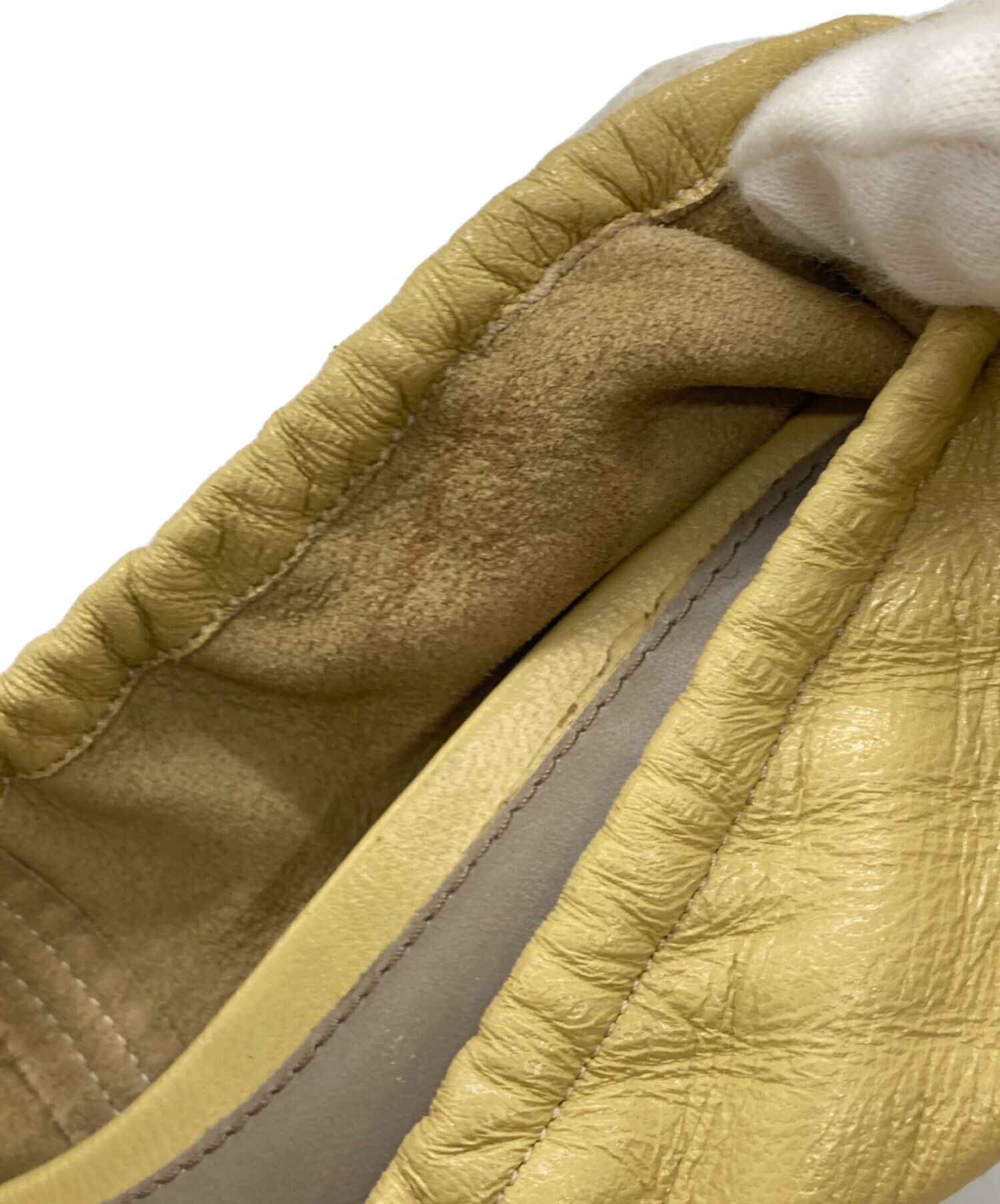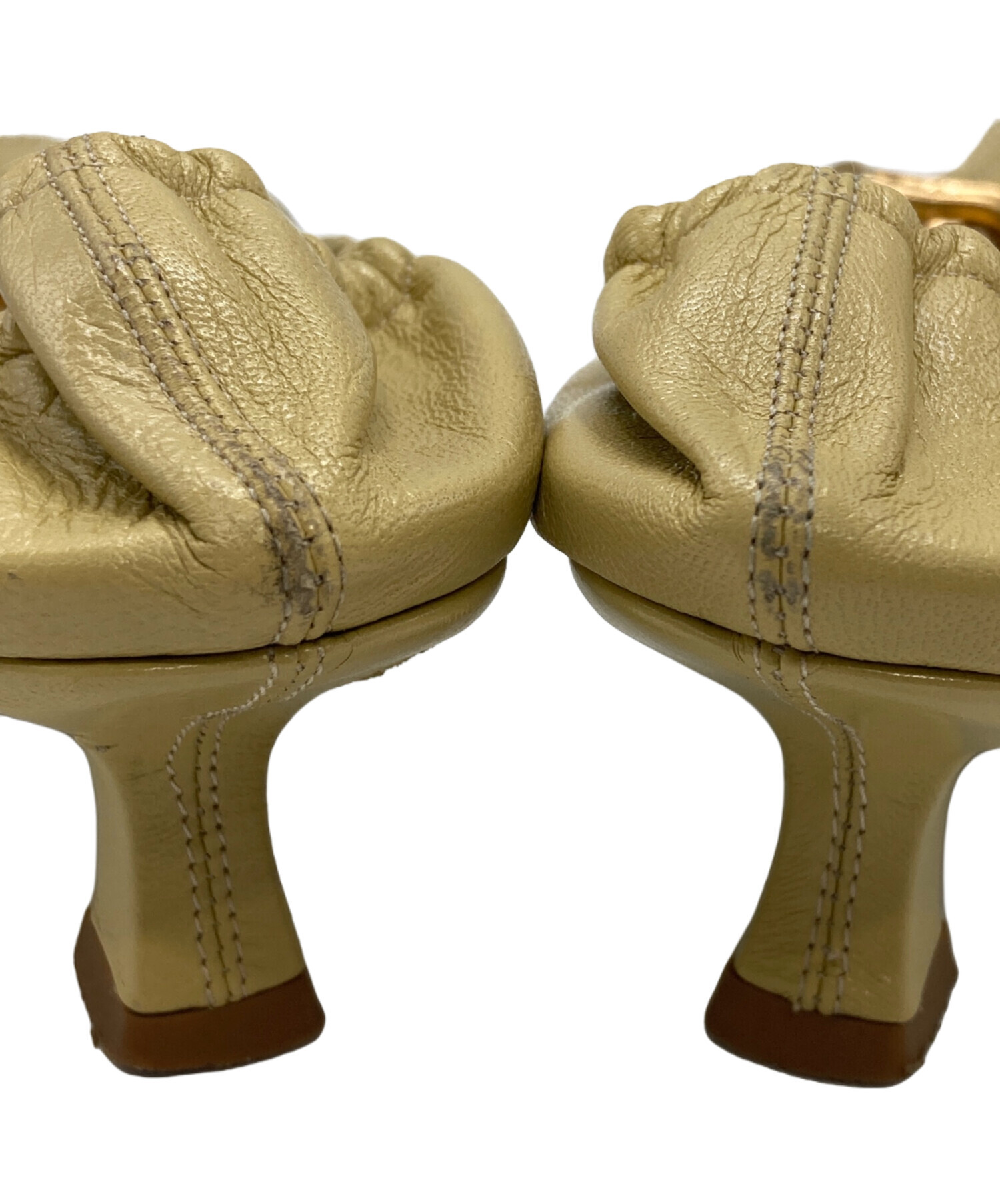 • BOTTEGA VENETA(ボッテガベネタ)BOTTEGA VENETA (ボッテガベネタ) マダム パテントレザー ギャザー パンプス ベージュ サイズ:37の古着・服飾アイテム 両足内部全体的に使用感・ヨゴレ有