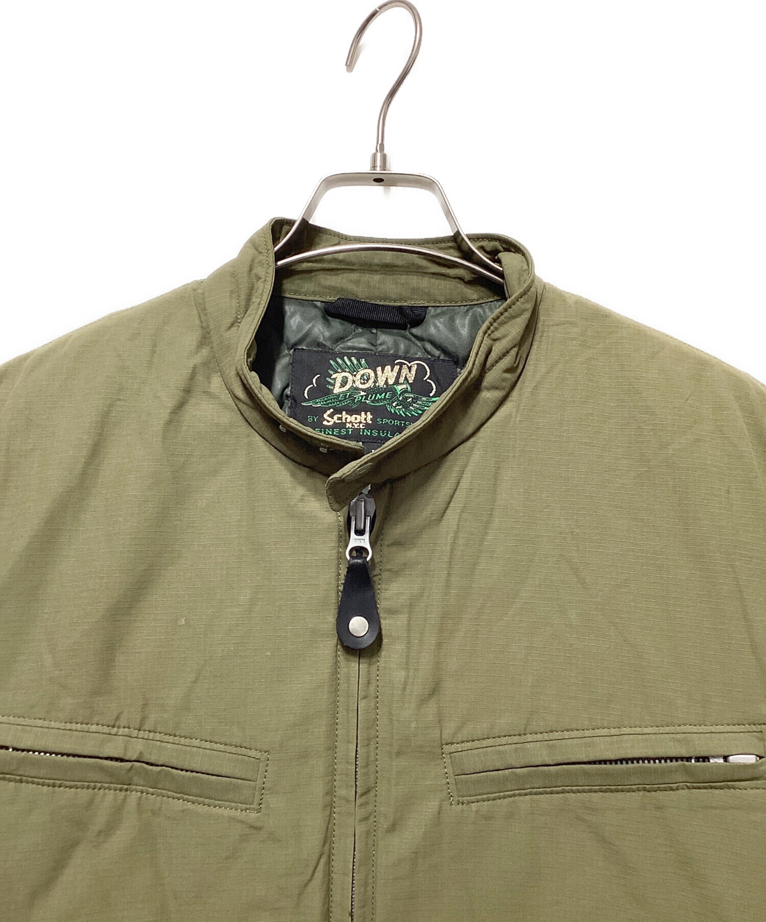 • Schott SPORTWEAR(ショット スポーツ ウェア)Schott SPORTWEAR (ショット スポーツ ウェア) ダウンジャケット オリーブ サイズ:Lの古着・服飾アイテム 襟薄ヨゴレ有