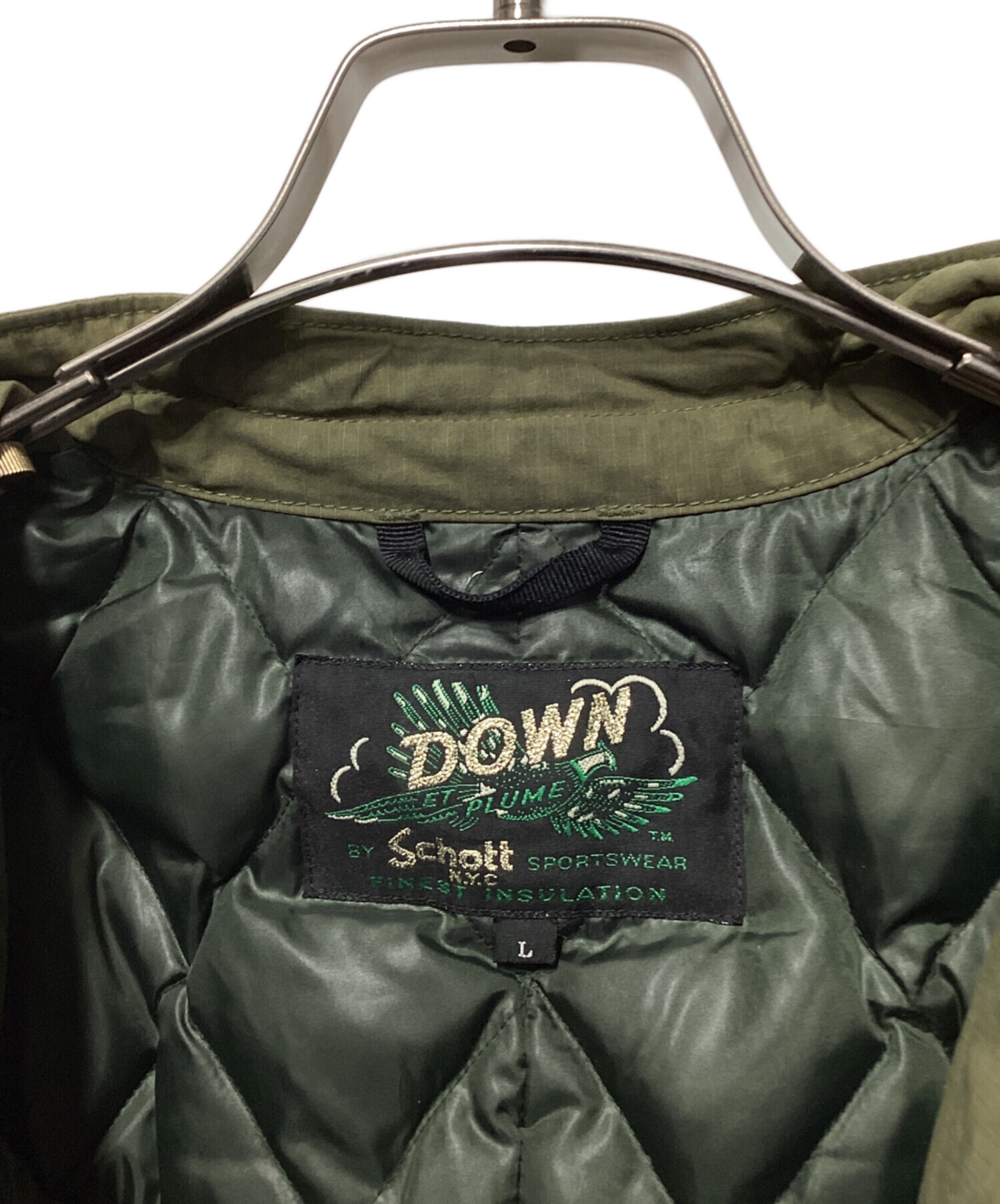 • Schott SPORTWEAR(ショット スポーツ ウェア)Schott SPORTWEAR (ショット スポーツ ウェア) ダウンジャケット オリーブ サイズ:Lの古着・服飾アイテム 袖口ヨゴレ有
