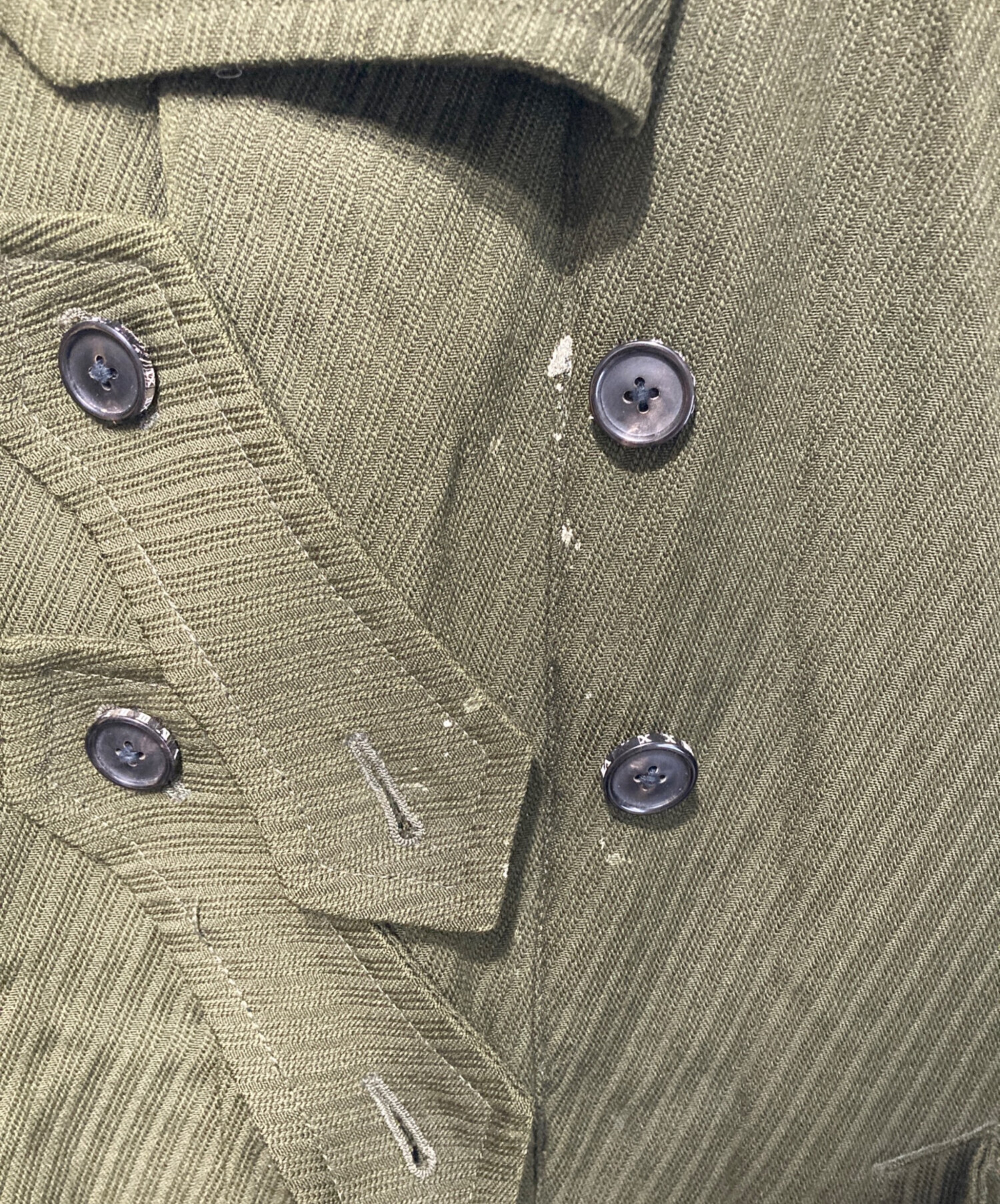 目立つシミや汚れ、におい等がある場合は商品画像や説明文にて極力表記させていただいておりますが、中古品という商品の特性上、全ての瑕疵や不備、洋服直し箇所を撮影・記載をすることは難しくなっております。また、ほとんどのアイテムは店頭と併売しておりますため、出品掲載時からコンディションが変動している場合もございます。あらかじめご了承くださいませ。