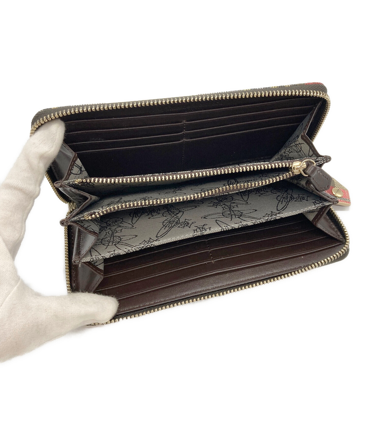 • Vivienne Westwood(ヴィヴィアンウエストウッド)Vivienne Westwood (ヴィヴィアンウエストウッド) ラウンドファスナー長財布 レッド×カーキの古着・服飾アイテム 内部ヨゴレ有