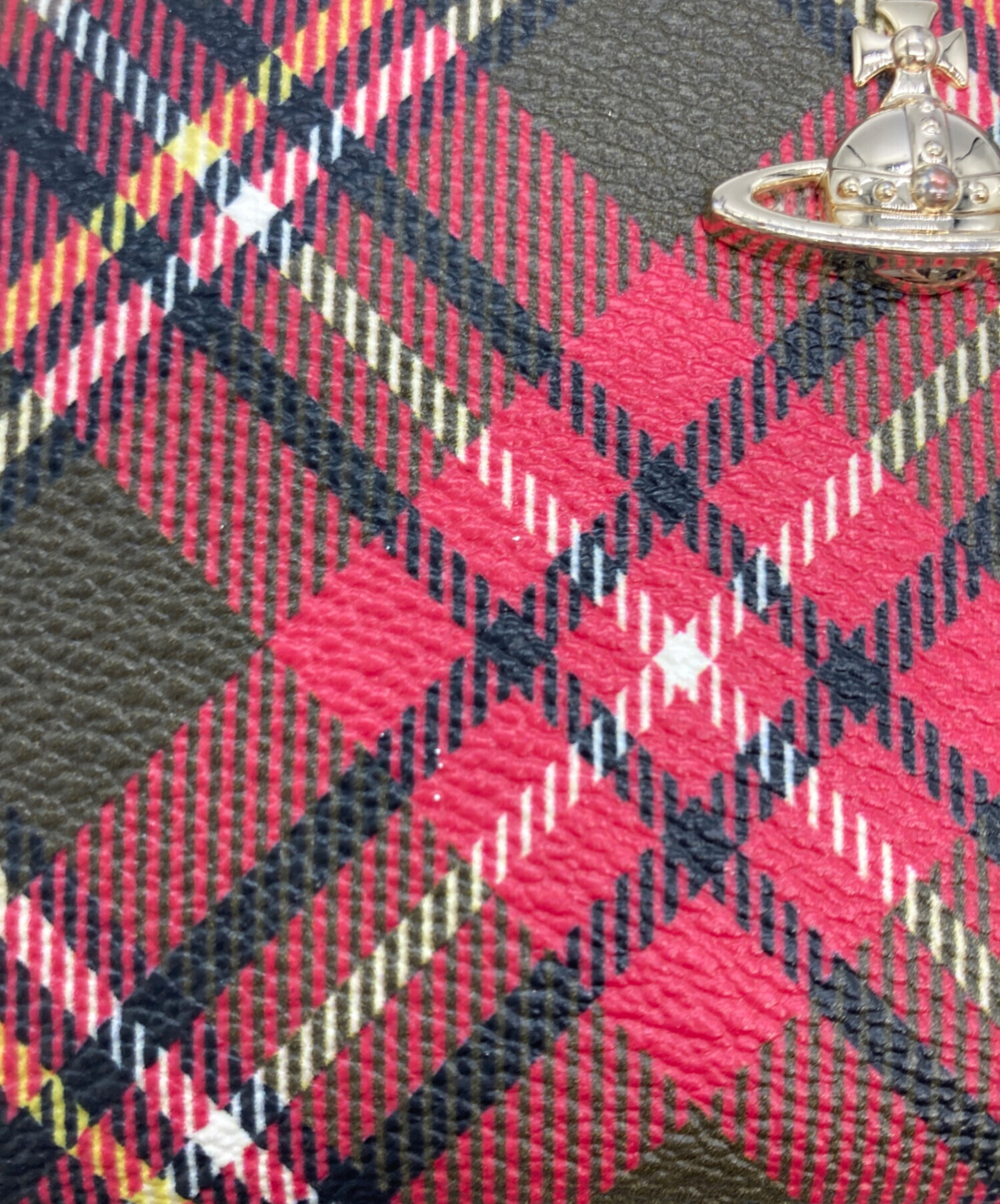 • Vivienne Westwood(ヴィヴィアンウエストウッド)Vivienne Westwood (ヴィヴィアンウエストウッド) ラウンドファスナー長財布 レッド×カーキの古着・服飾アイテム キズ・オーブメッキスレ有