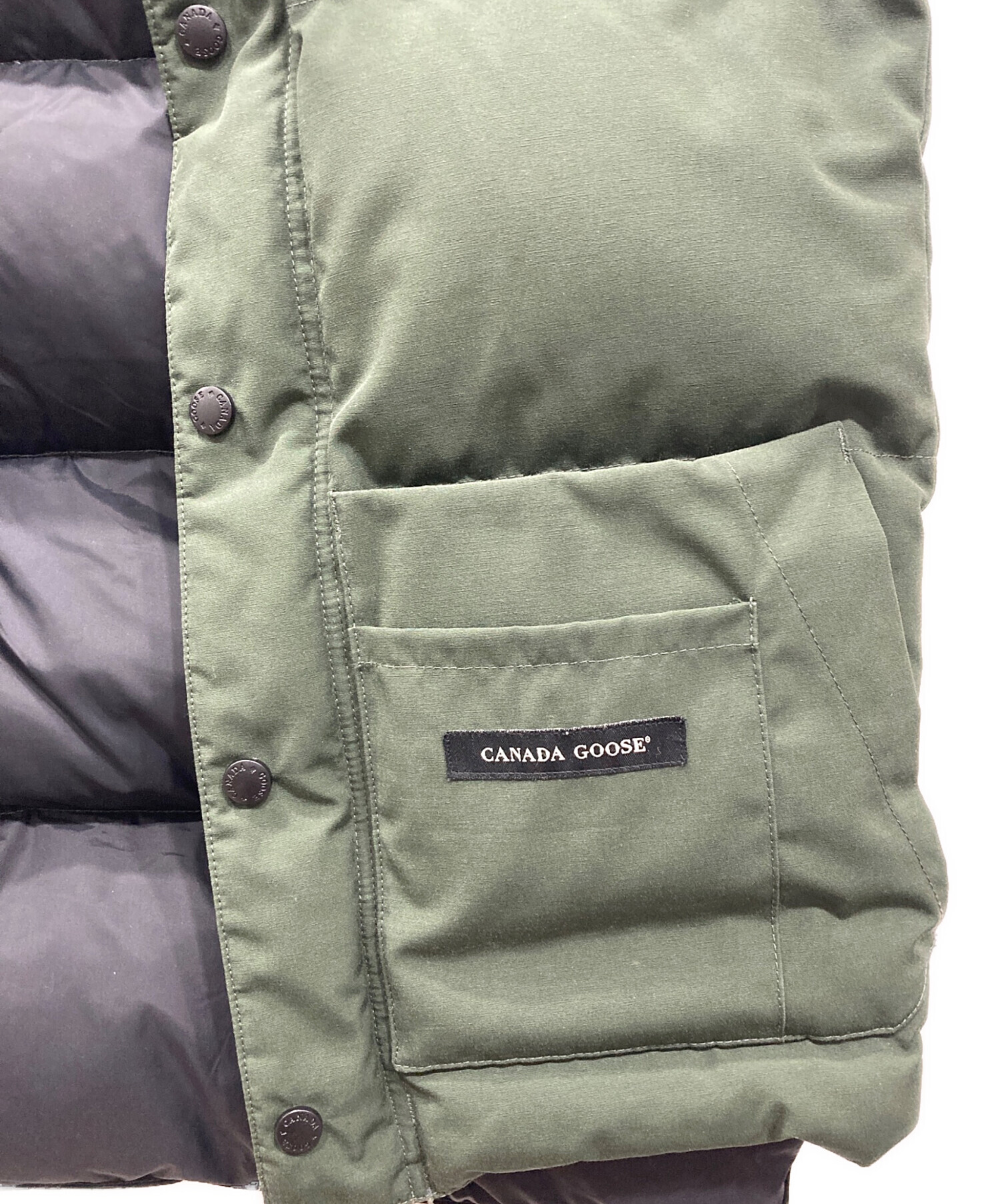 • CANADA GOOSE(カナダグース)CANADA GOOSE (カナダグース) ダウンベスト グリーン サイズ:XSの古着・服飾アイテム 襟ヨゴレ有