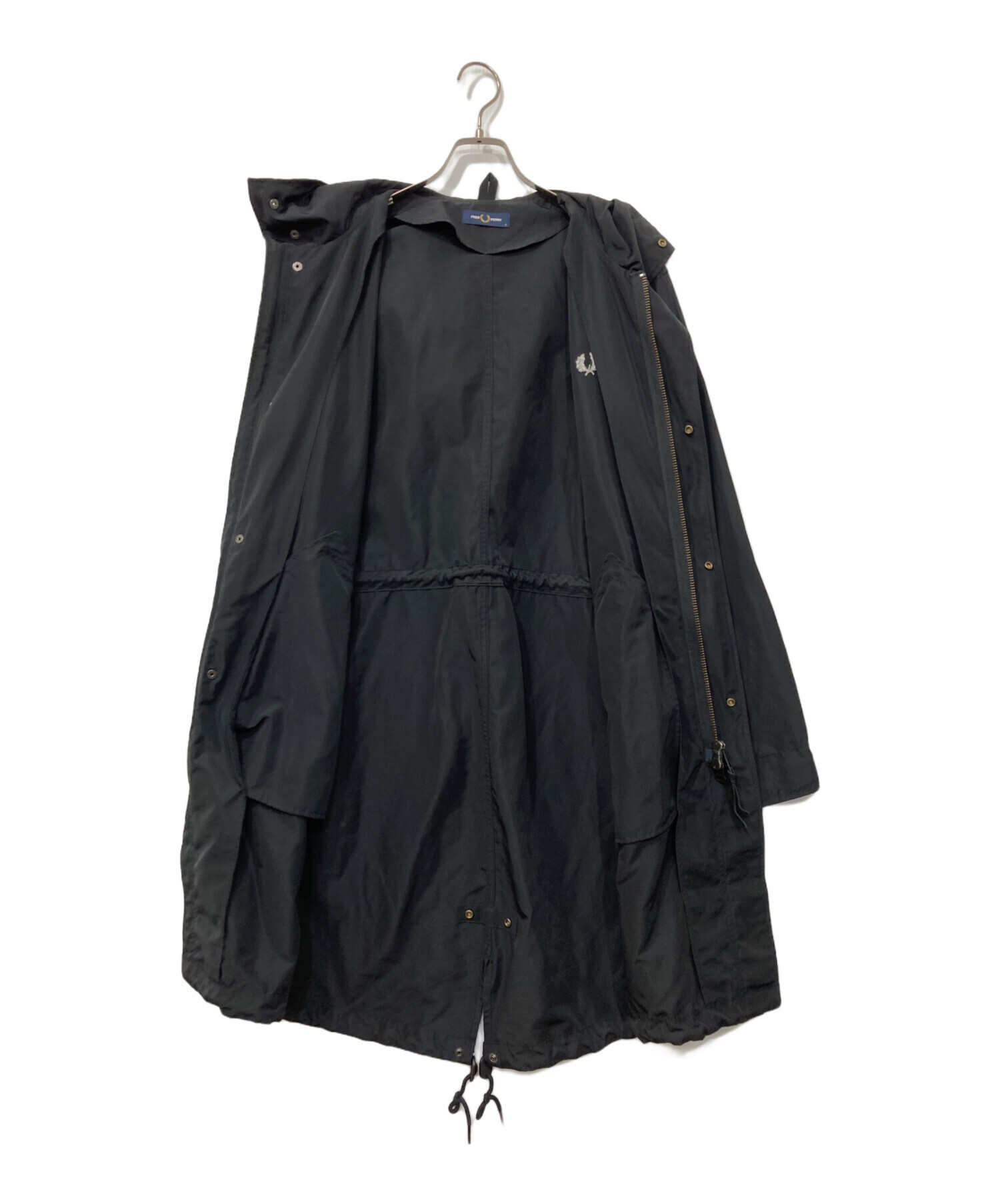 • FRED PERRY(フレッドペリー)FRED PERRY (フレッドペリー) ナイロンモッズコート ブラック サイズ:Sの古着・服飾アイテム 背面フード下スレ有