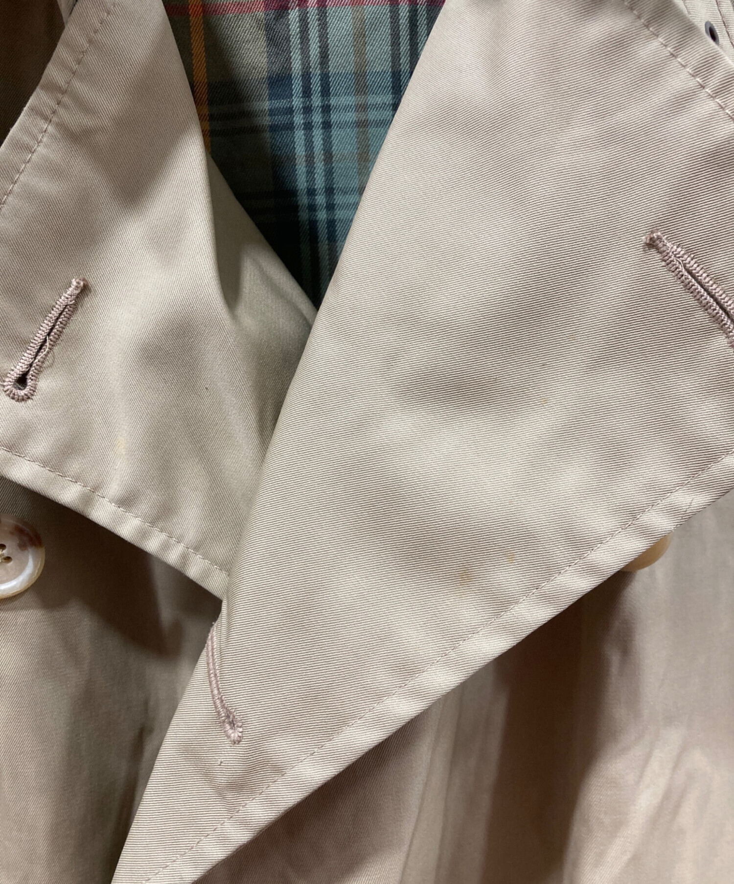 • POLO RALPH LAUREN(ポロ・ラルフローレン)POLO RALPH LAUREN (ポロ・ラルフローレン) 裏チェックトレンチコート ベージュ サイズ:Sの古着・服飾アイテム 襟ヨゴレ有