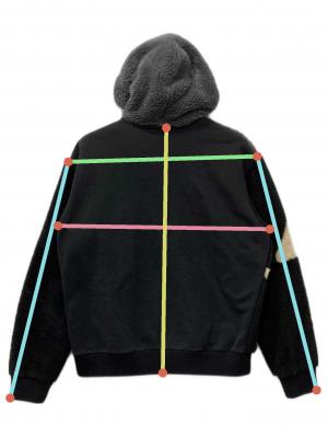 | 素材 | 表地前面: ポリエステル 100% 表地背面: 綿 82% ポリエステル 18% リブ部分: レーヨン 84% ポリエステル 15% ポリウレタン 1% 裏地: 綿 100% |