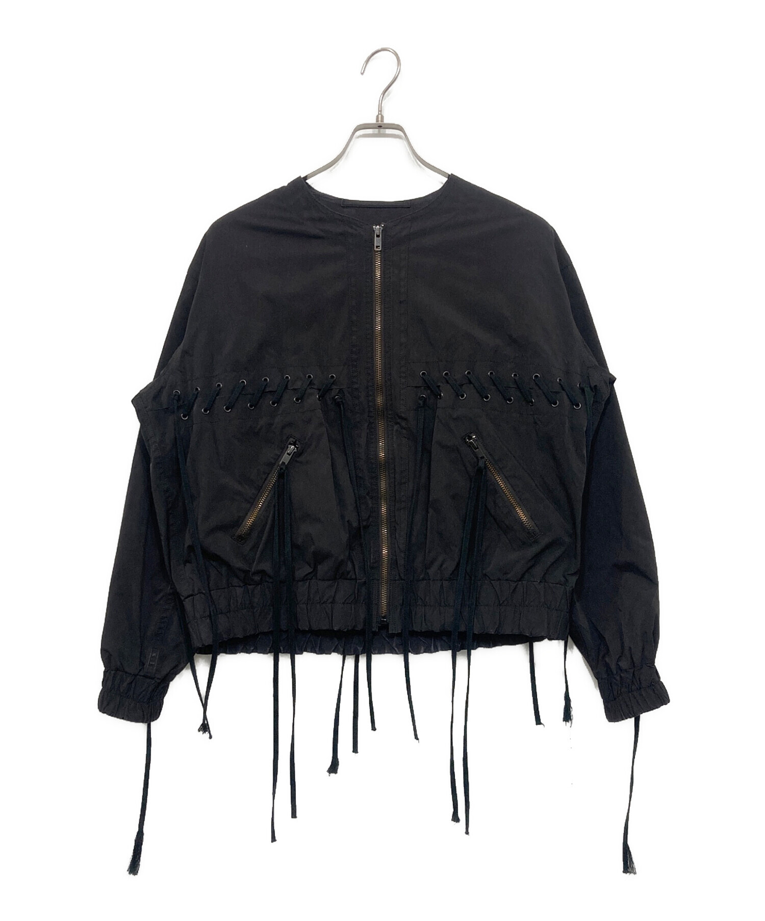 • UNUSED(アンユーズド)UNUSED (アンユーズド) レースアップジャケット ブラックの古着・服飾アイテム 袖口スレ有