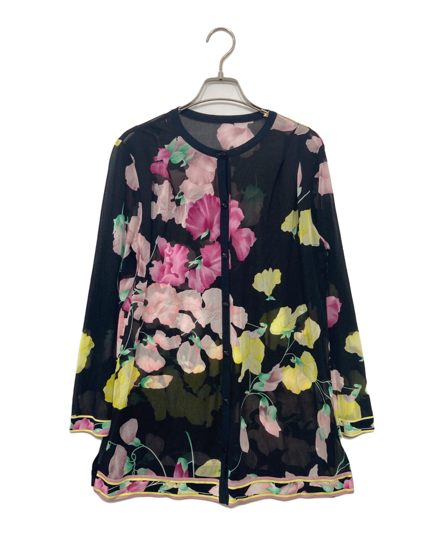 • LEONARD FASHION(レオナールファッション)LEONARD FASHION (レオナールファッション) カンカン素材 シアーカーディガン ブラック サイズ:38の古着・服飾アイテム ボタン緩み有