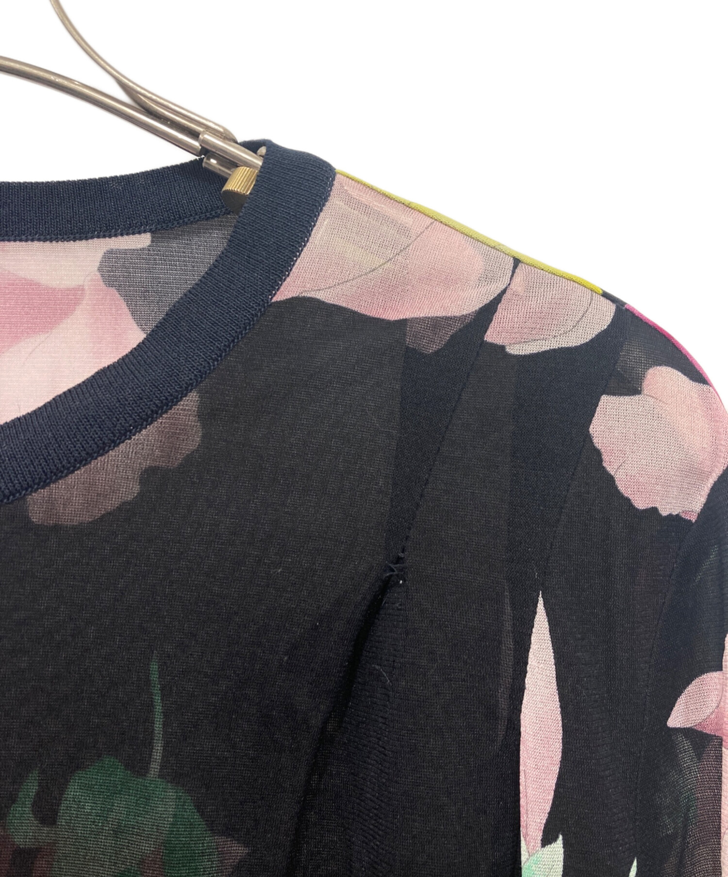 • LEONARD FASHION(レオナールファッション)LEONARD FASHION (レオナールファッション) カンカン素材 シアーカーディガン ブラック サイズ:38の古着・服飾アイテム 袖シミ有