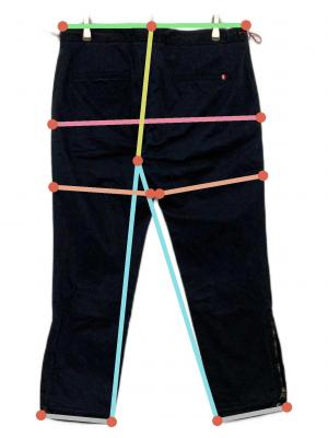 ウエスト周り約88cm ヒップ周り約109.5cm もも周り約62cm 裾周り約36.5cm 股上(後ろ)約34.5cm 股下(後ろ)約65.5cm