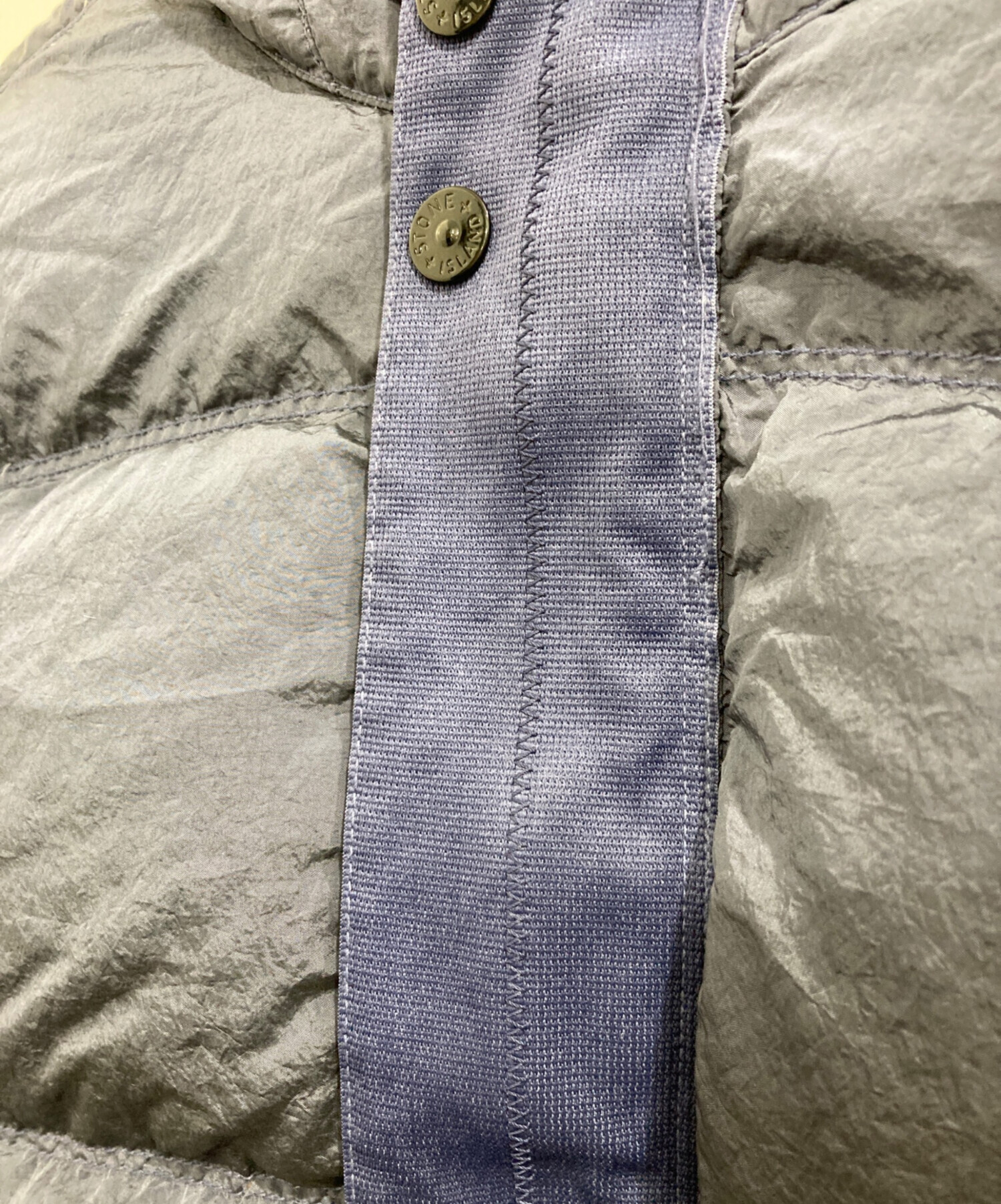 • STONE ISLAND(ストーンアイランド)STONE ISLAND (ストーンアイランド) NYLON METAL IN ECONYL ANTI-DROP HOODED DOWN JACKET/ナイロンメタル ダウンジャケット ブルー サイズ:Mの古着・服飾アイテム 襟ヨゴレ有