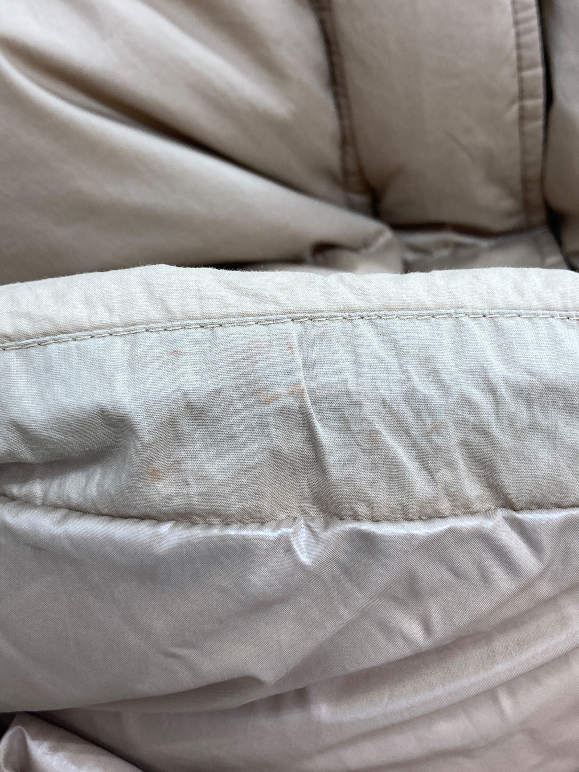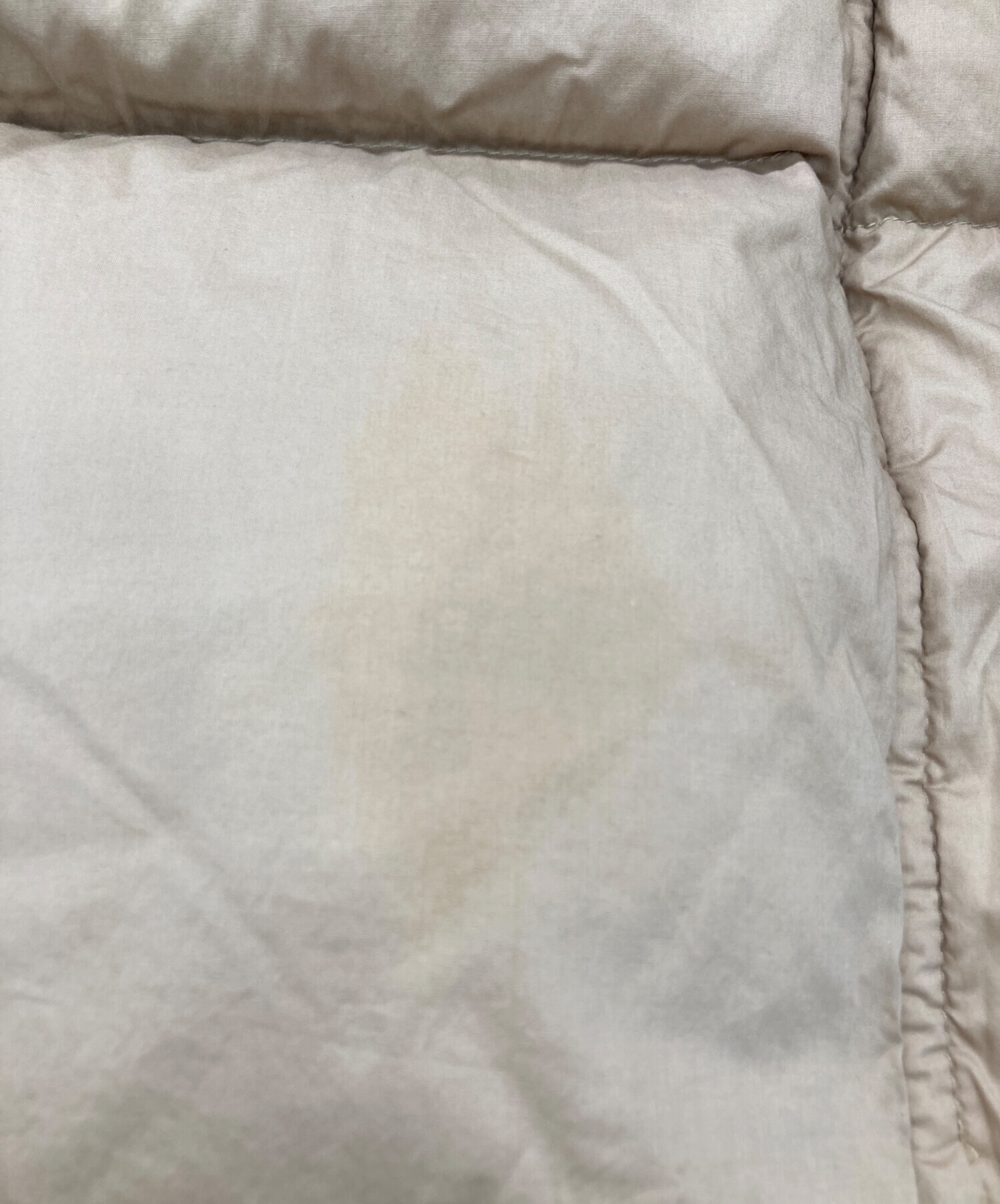 • MONCLER(モンクレール)MONCLER (モンクレール) ロングダウンベスト ベージュの古着・服飾アイテム フロント右側下部シミ