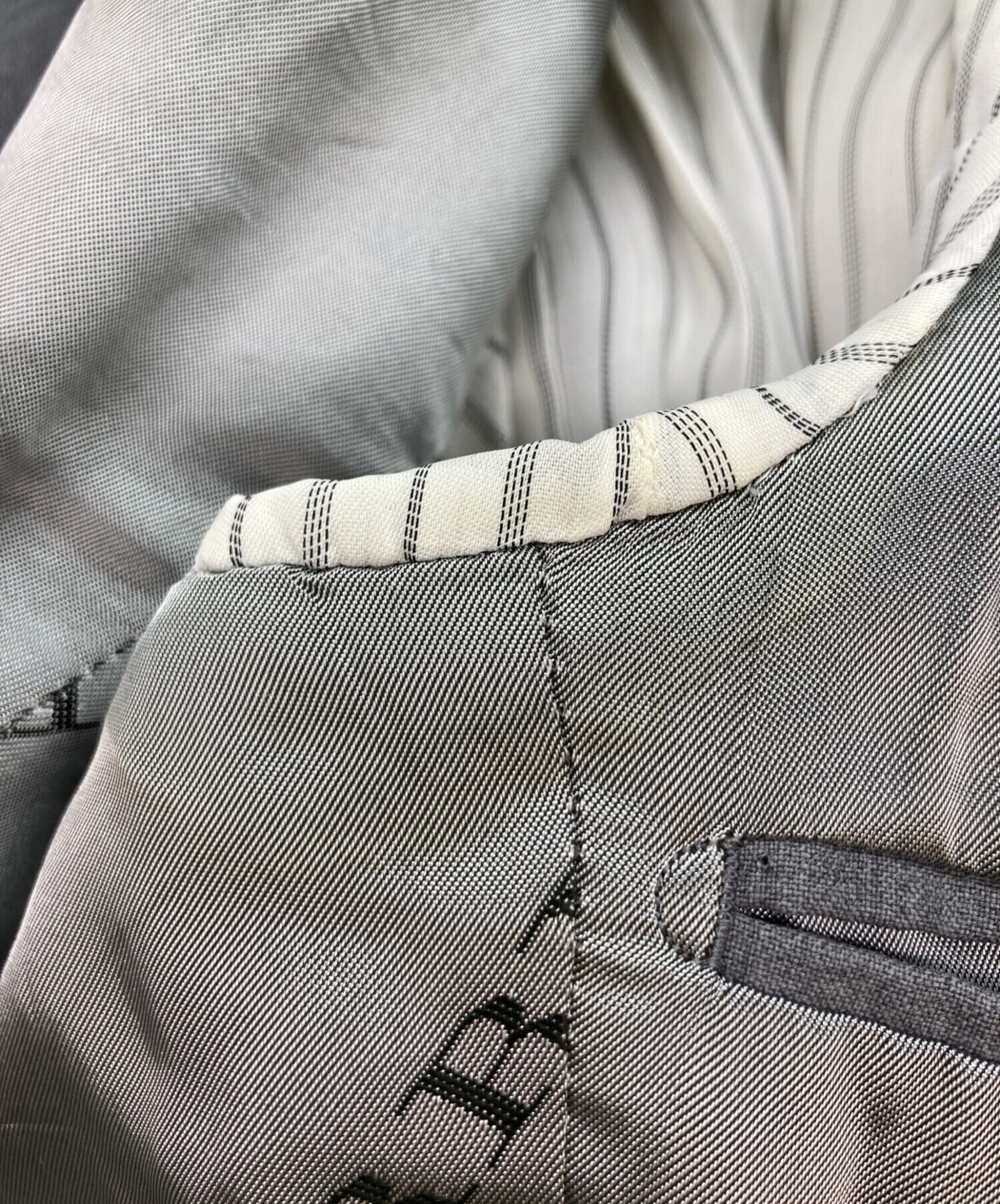 目立つシミや汚れ、におい等がある場合は商品画像や説明文にて極力表記させていただいておりますが、中古品という商品の特性上、全ての瑕疵や不備、洋服直し箇所を撮影・記載をすることは難しくなっております。また、ほとんどのアイテムは店頭と併売しておりますため、出品掲載時からコンディションが変動している場合もございます。あらかじめご了承くださいませ。