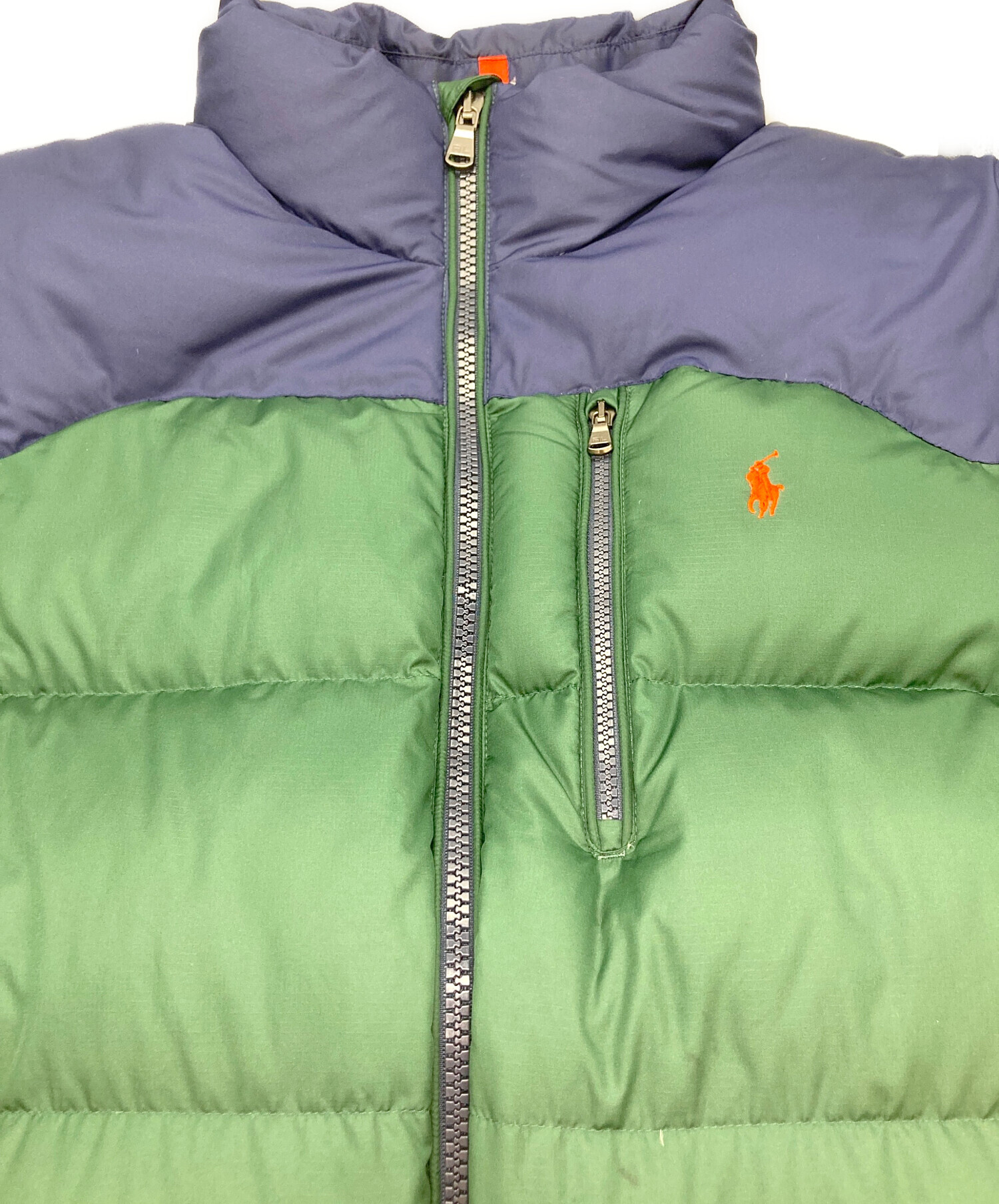 • POLO RALPH LAUREN(ポロ・ラルフローレン)POLO RALPH LAUREN (ポロ・ラルフローレン) ダウンベスト グリーン×ネイビー サイズ:XXLの古着・服飾アイテム 汚れ有り
