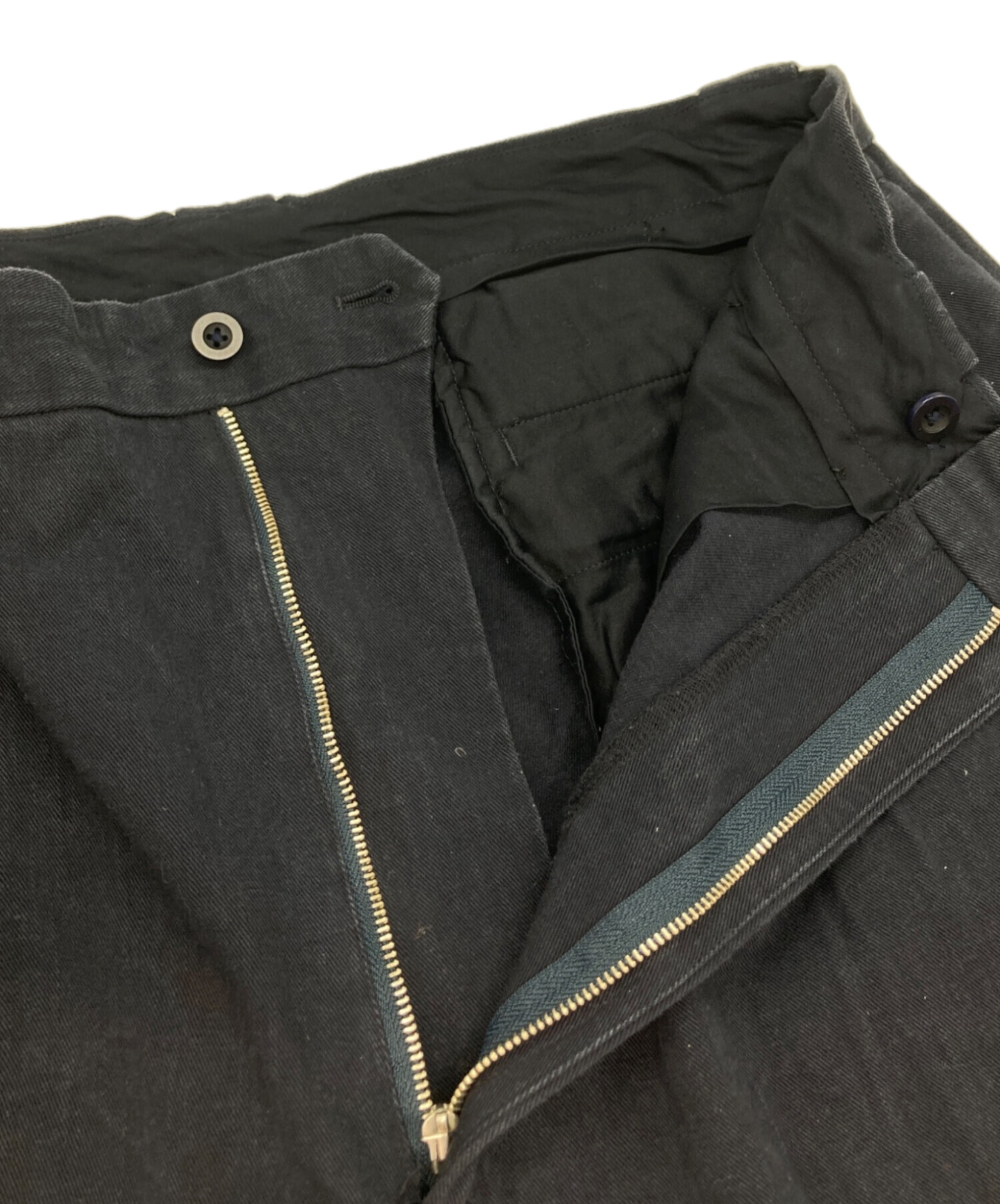 • KAPTAIN SUNSHINE(キャプテンサンシャイン)KAPTAIN SUNSHINE (キャプテンサンシャイン) 2Pleats Tapered Trousers/リネンブレンドパンツ ネイビー サイズ:32の古着・服飾アイテム 正面に汚れ