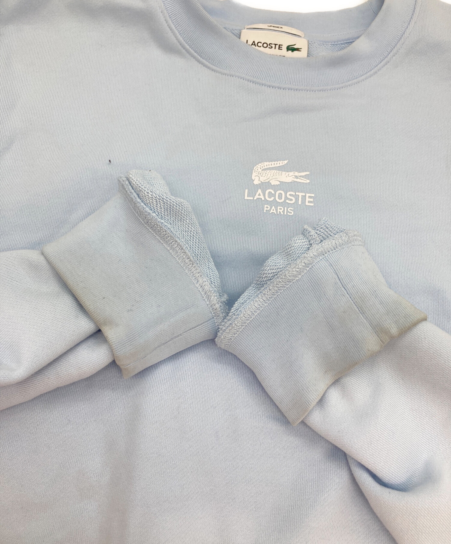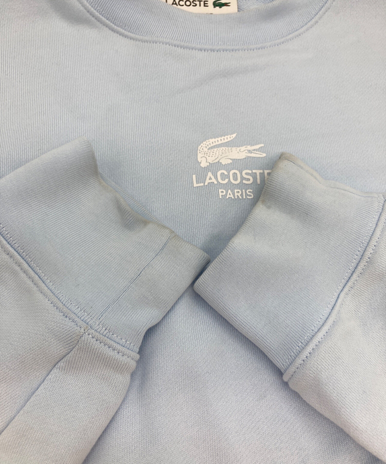 • LACOSTE(ラコステ)LACOSTE (ラコステ) ワンポイントクルーネックスウェット スカイブルー サイズ:Mの古着・服飾アイテム 袖口汚れ