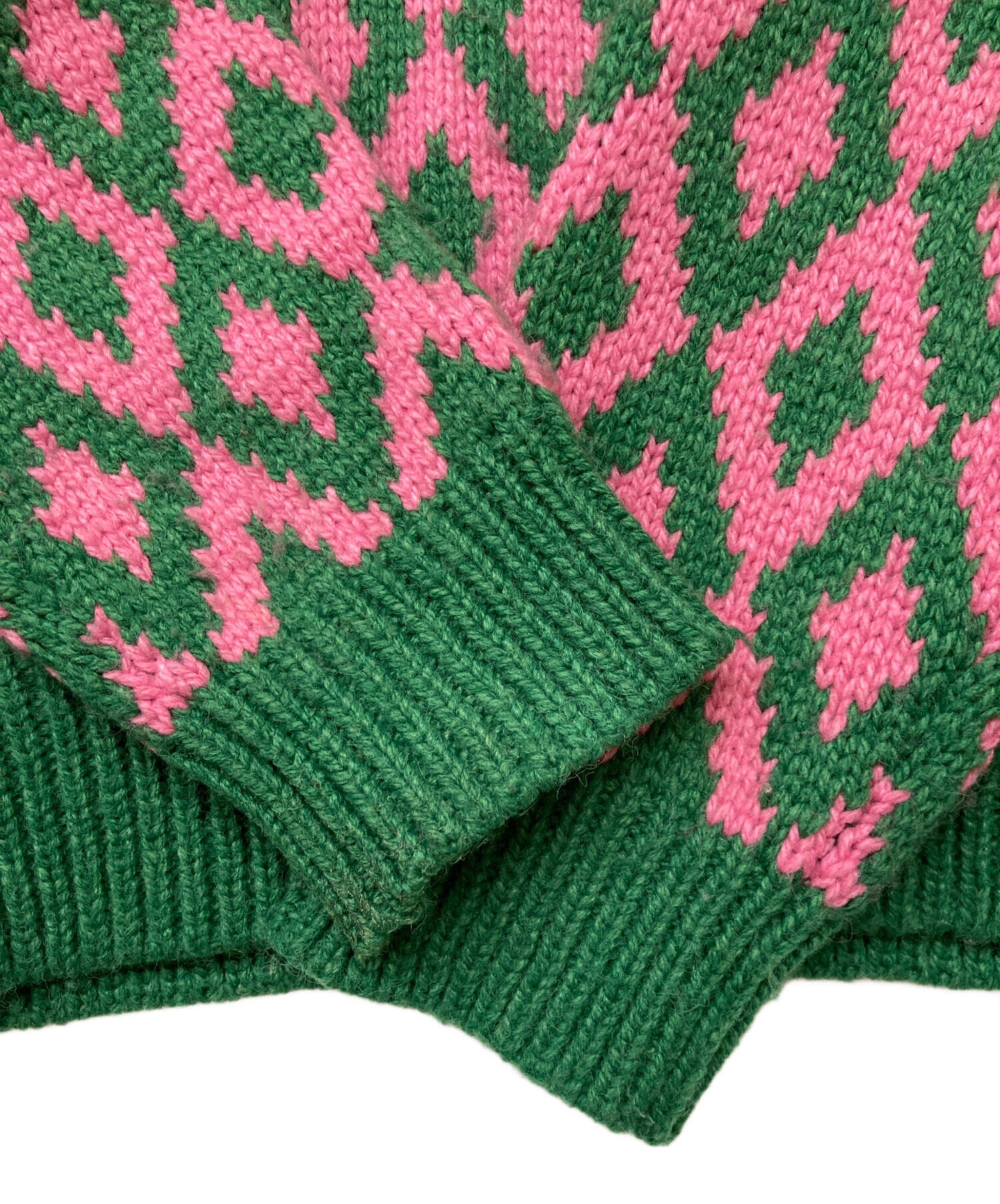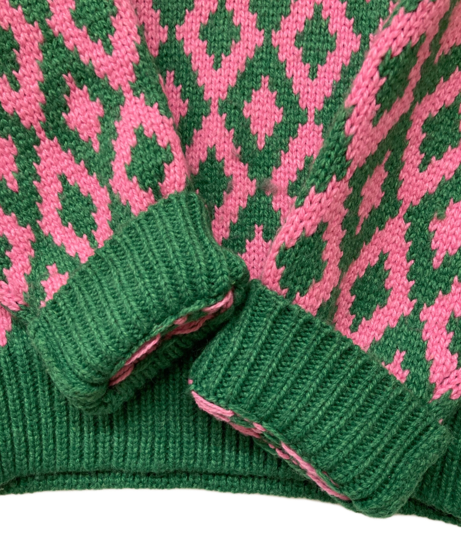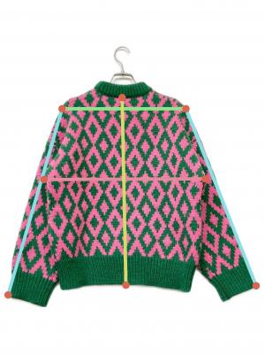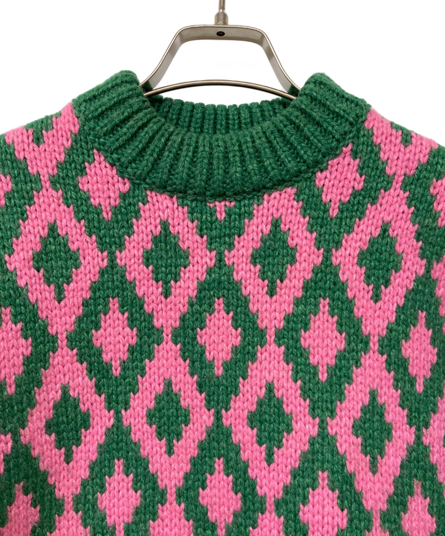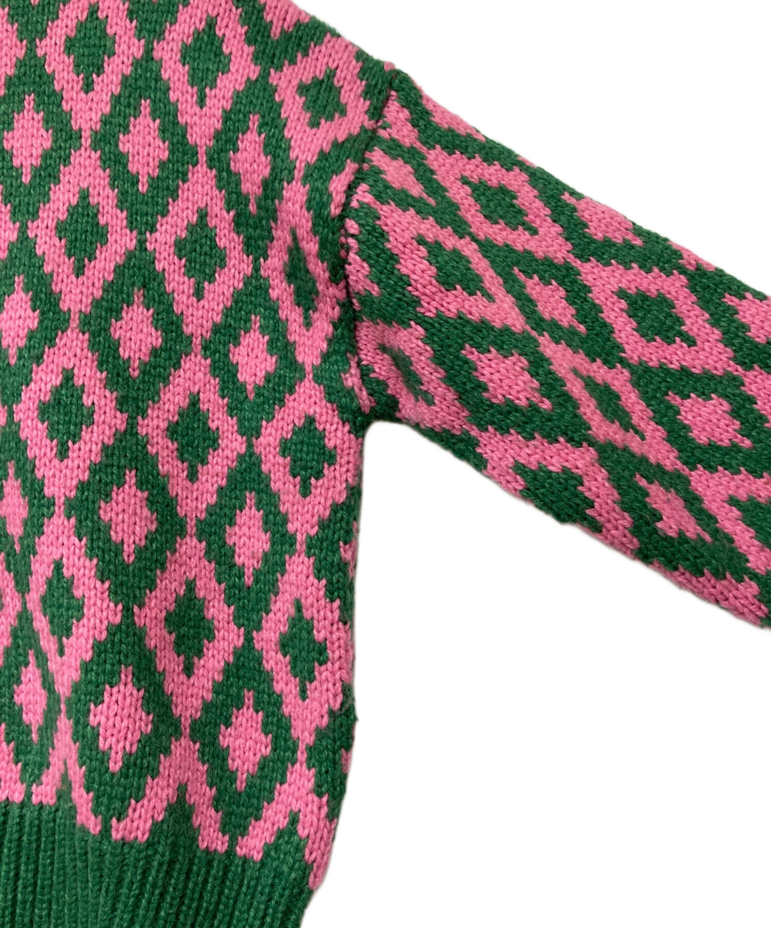 アイテム名 Amma アーガイルクルーネックニット/ビビッドカラー/ショッキングカラー/派手/総柄/ローゲージニット/緑