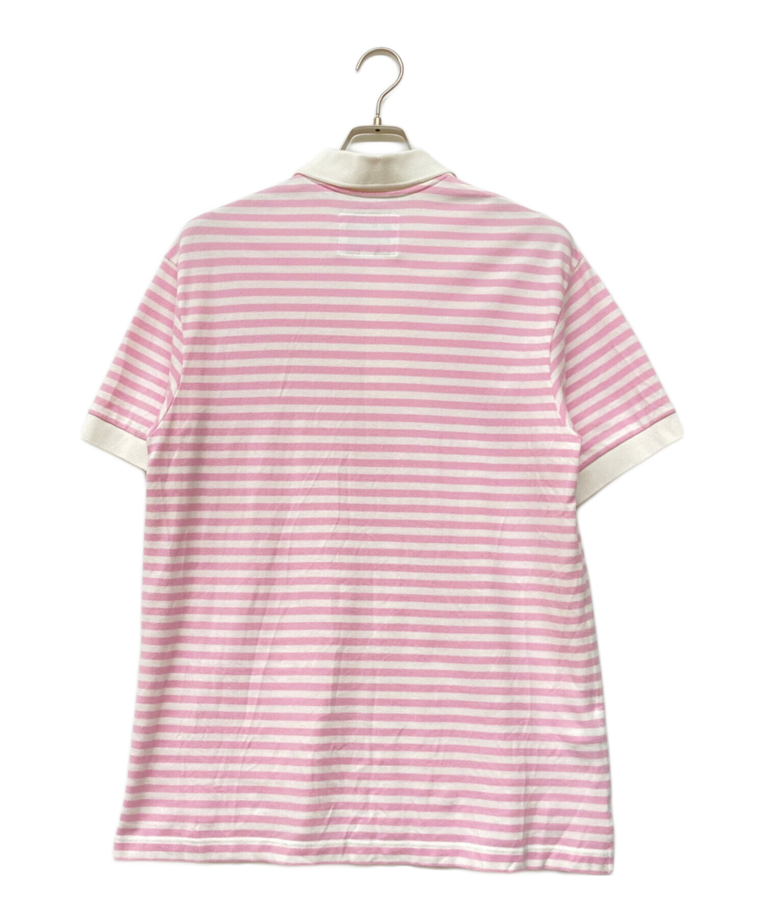 • LACOSTE(ラコステ)LACOSTE (ラコステ) A.P.C. (アーペーセー) 22SS 別注 POLO HOMME 鹿の子ポロシャツ ホワイト×ピンク サイズ:Sの古着・服飾アイテム 襟ヨゴレ有