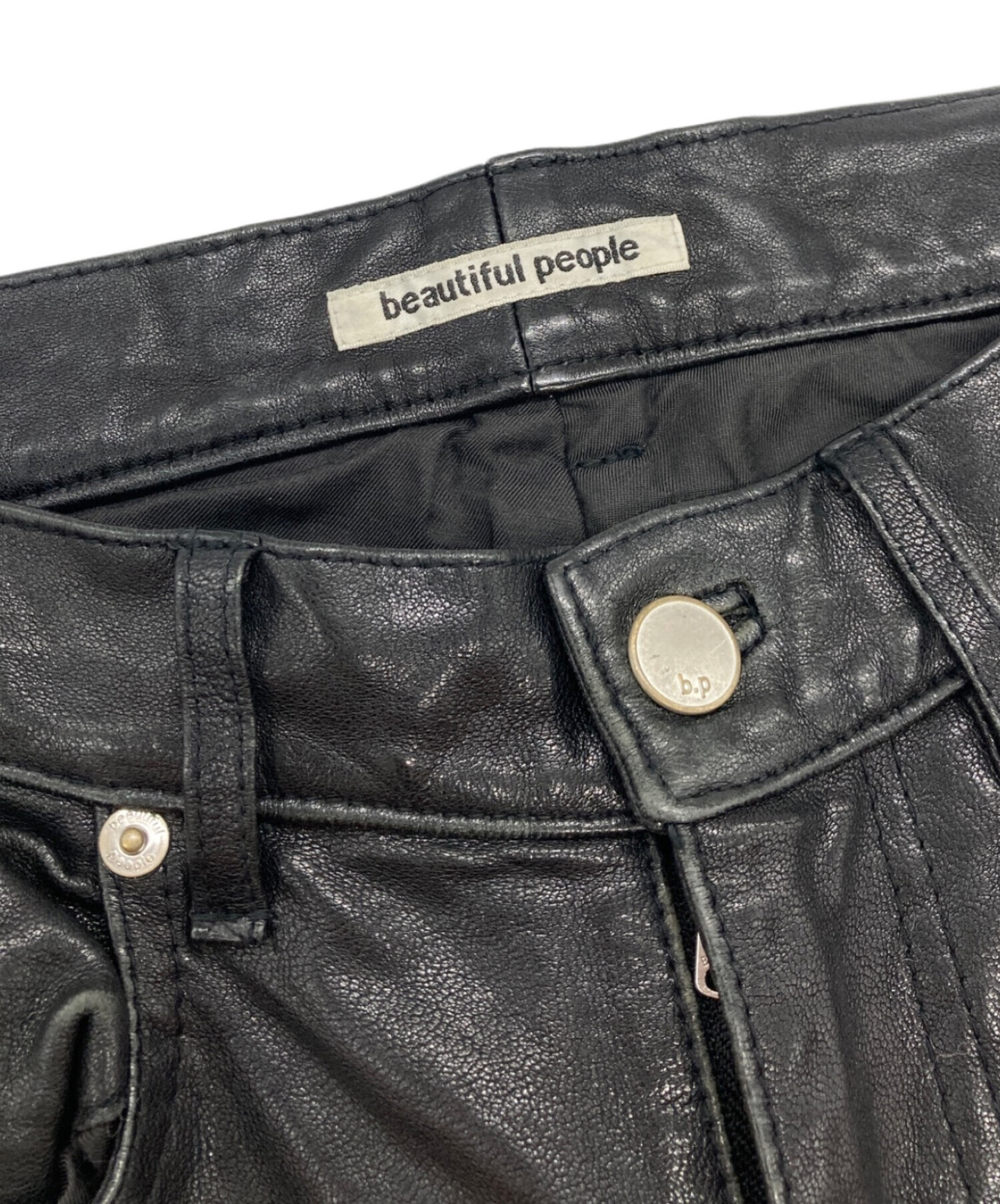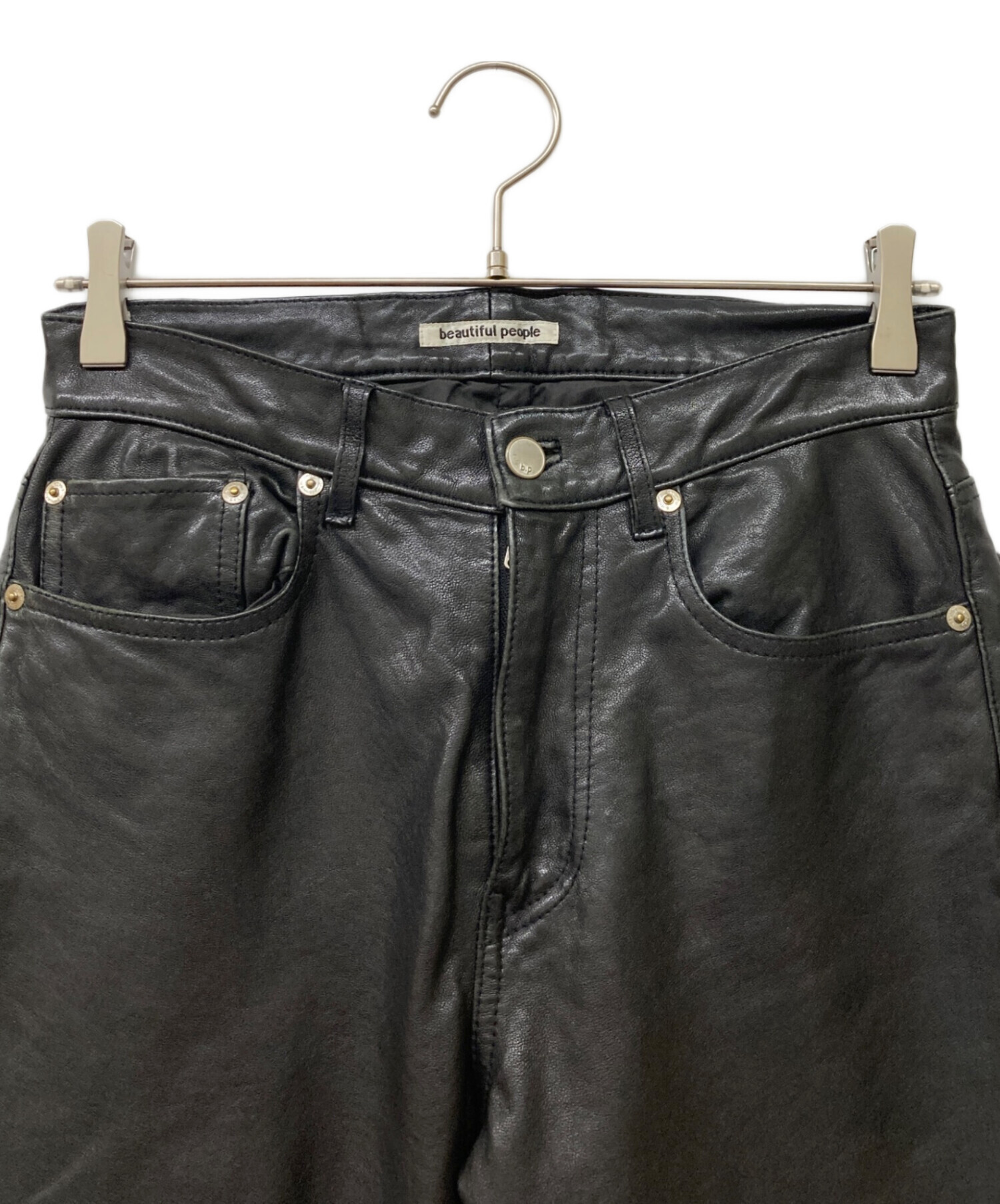 • beautiful people(ビューティフルピープル)beautiful people (ビューティフルピープル) ラムレザーパンツ ブラック サイズ:34の古着・服飾アイテム スレ・ヨゴレ有