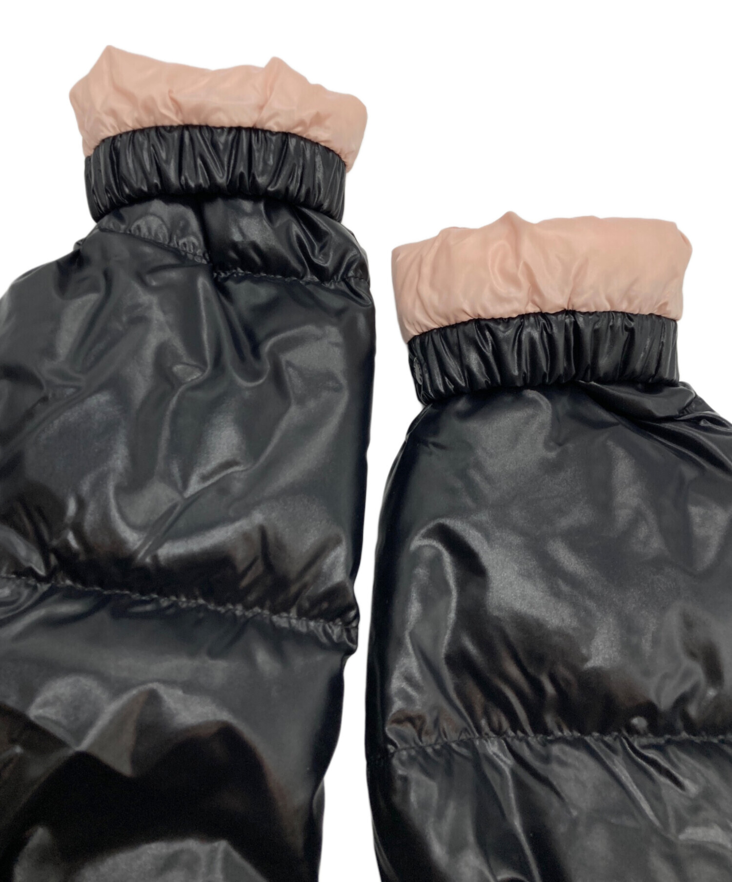光沢感のあるブラックの表地に裏地はパステルピンクという配色、腕部分のブランドロゴマークなど、洗練されたデザインも魅力的です。